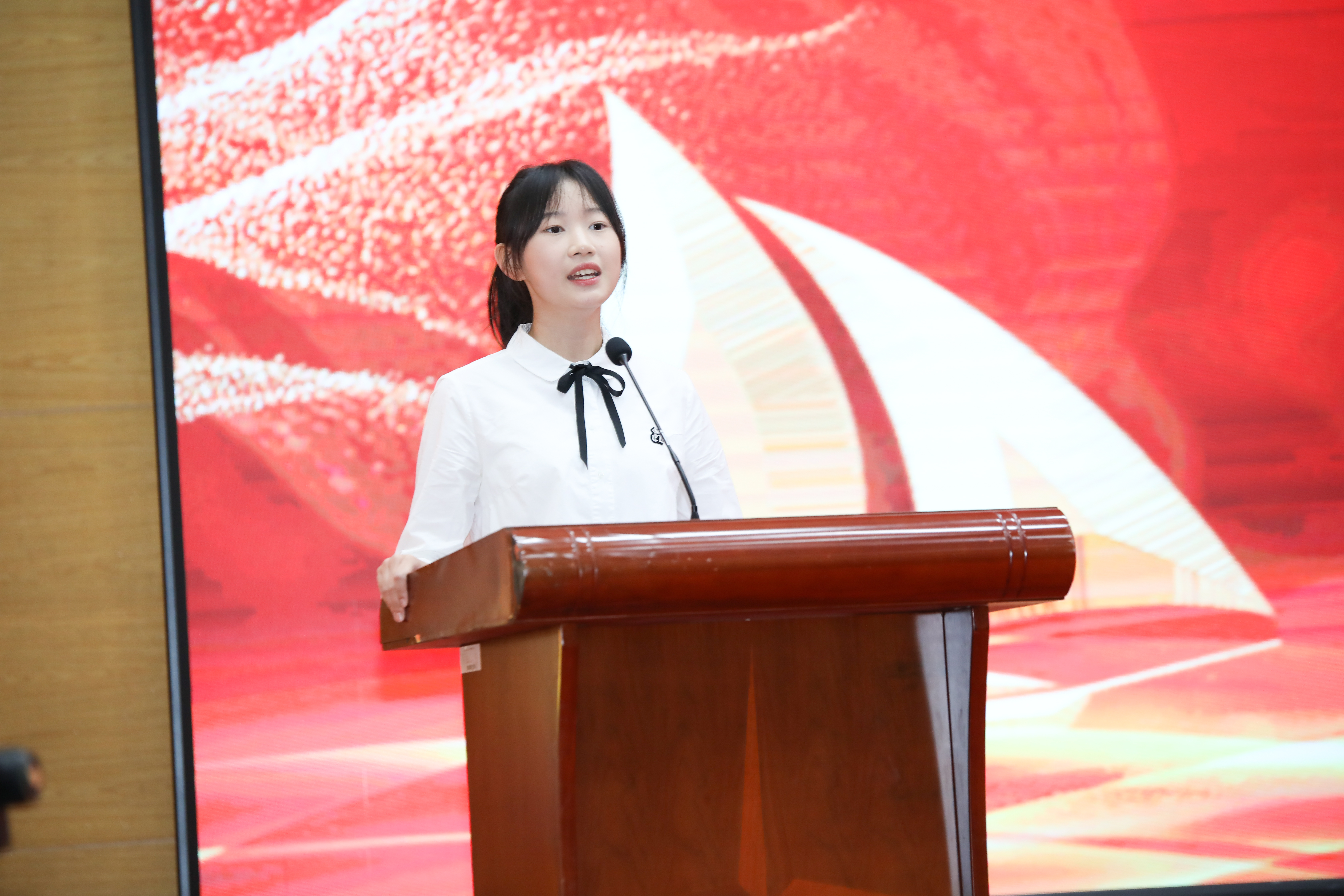 2021级本科生周美杉同学作为员工代表发言。她回顾了高中时的奋斗时光,畅谈了入学以来的感受体会,表达了投身化学科研事业的意愿,发出了强国有我、强校有我、强科技有我的青年之声。