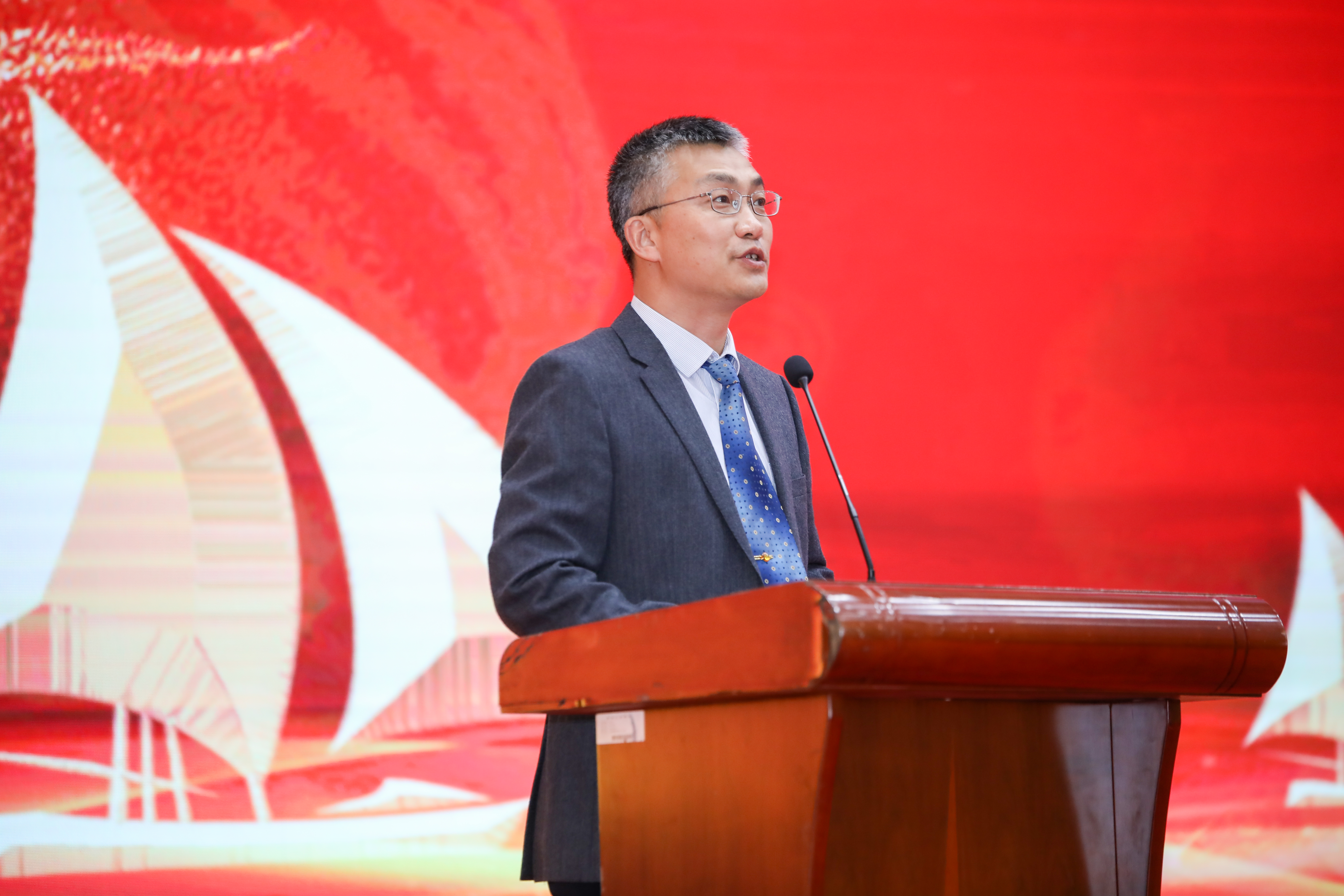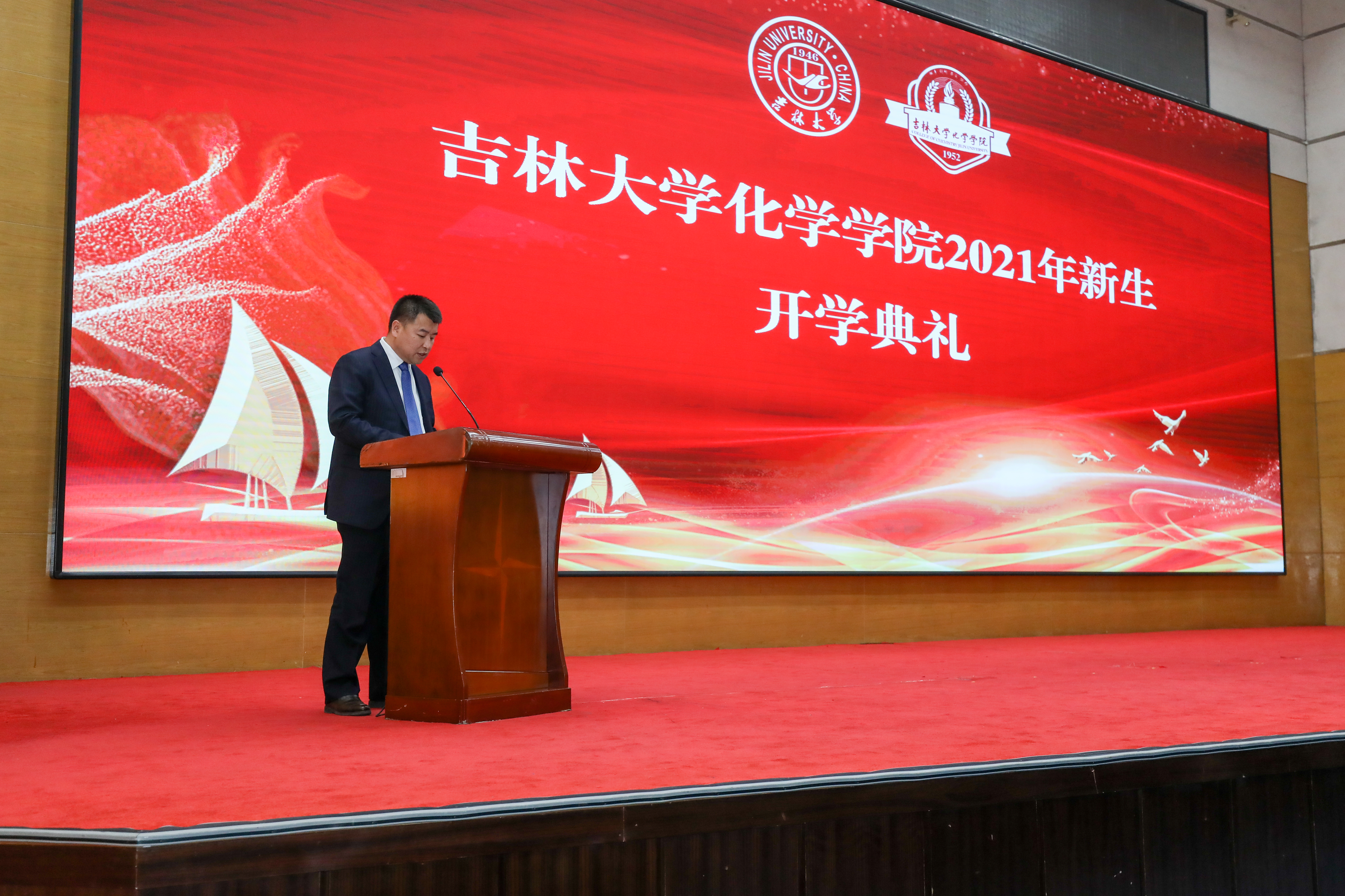 经理吕中元为典礼致辞,他对公司252位本科生新同学表示热烈的欢迎,并向始终关注公司发展建设、辛勤付出的老师和家长们致以衷心感谢。“源五湖四海,终百脉归一,你们将有一个共同的名字‘吉大化学人’”。他简单介绍了公司的建设发展情况,鼓励员工增强强国有我之志气、底气、骨气,结合公司建系元勋唐敖庆先生等老一代化学家北上建设吉大化学的故事,激励同学们要热爱伟大祖国;结合暑假期间的经理赠书,激励同学们要有跳出思维藩篱的能力,努力让“critical thinking”—也就是品判性思维成为自己的思维模式;结合我国化学科技工作者推动世界化学发展的实例,激励同学们要守正创新之道,爱上化学,学好化学,未来能够引领化学,通过当下的努力让自己成为祖国建设的有用之才、栋梁之材。