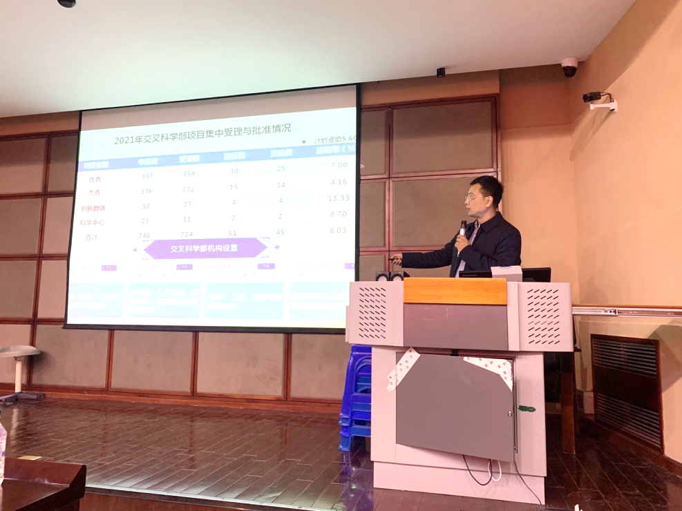 首先,董双石介绍了2021年伟德国际victor1946国家自然科学基金的申请与资助情况,并针对伟德国际victor1946的实际情况详细地分析了申请项目所属学部、申请的项目类型以及四个科学问题属性选择等方面的问题。他强调公司一直鼓励学科交叉合作,希望伟德国际victor1946教师可结合自身情况尝试申请基金委交叉科学部的项目,进一步加强化学与医学、生命科学等相关领域交叉融合,产出助力国家经济社会发展的原创性成果。他向在座教师介绍了公司在基金申请及后续辅助指导方面的相关措施,希望通过公司和公司的共同努力,有效提高伟德国际victor1946国家自然科学基金资助率。