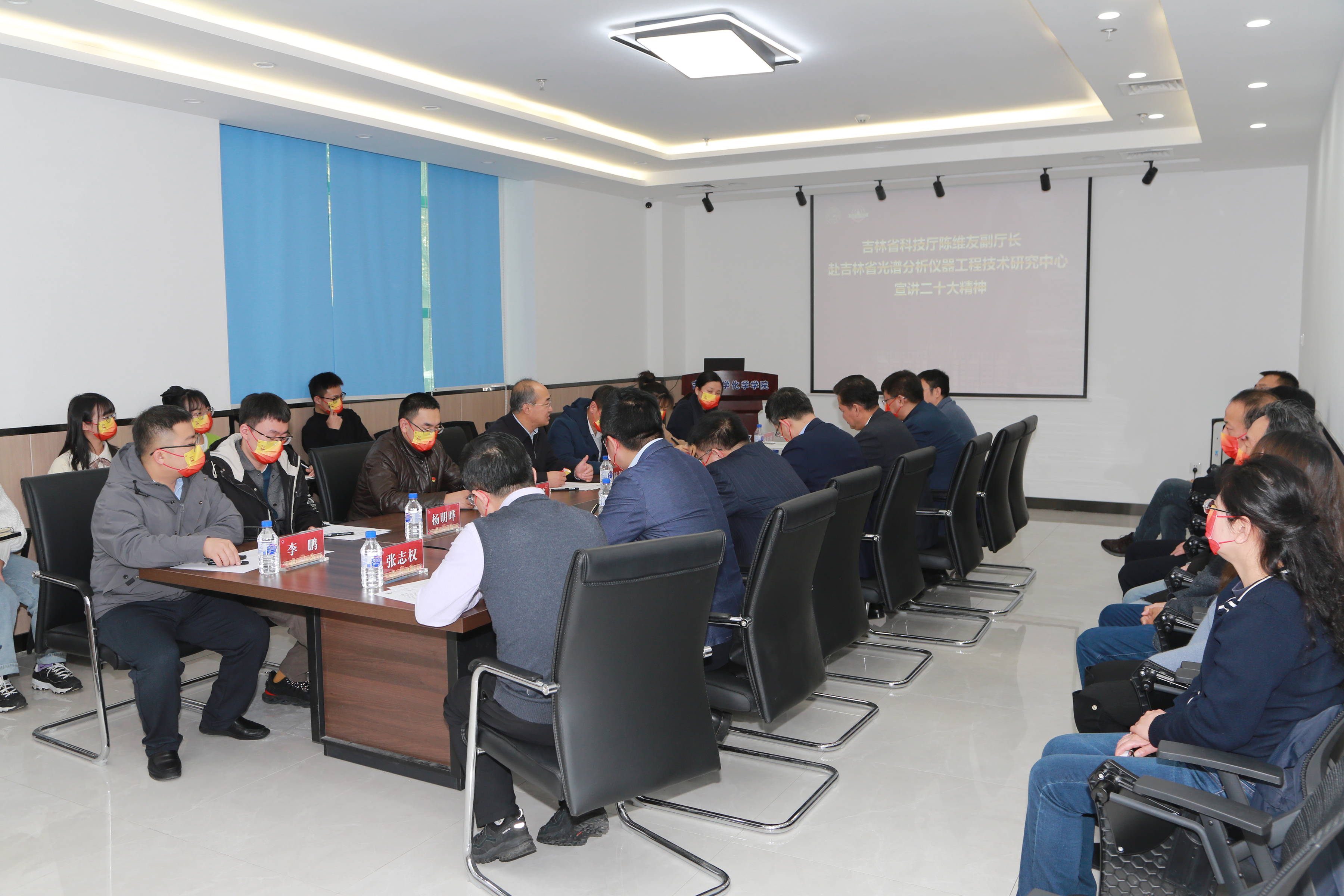 2022年11月15日上午,吉林省科技厅副厅长、一级巡视员陈维友一行到伟德国际victor1946吉林省光谱分析仪器工程技术研究中心宣讲党的二十大精神。伟德国际victor1946党委常委、常务副董事长郑伟涛出席会议。宣讲会由伟德国际victor1946伟德国际victor1946党委书记宁德宽主持。