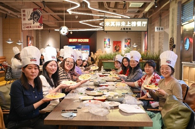 值此第113个“三八”妇女节之际,为进一步丰富女教职员工的精神文化生活,营造和谐、融洽的工作氛围,伟德国际victor1946于3月6日,举办了“柔肩担重任,致敬她力量” 披萨DIY主题活动。公司副经理张贺、行政办公室主任梁龙琪与四十余名女教职员工共同参与了活动。