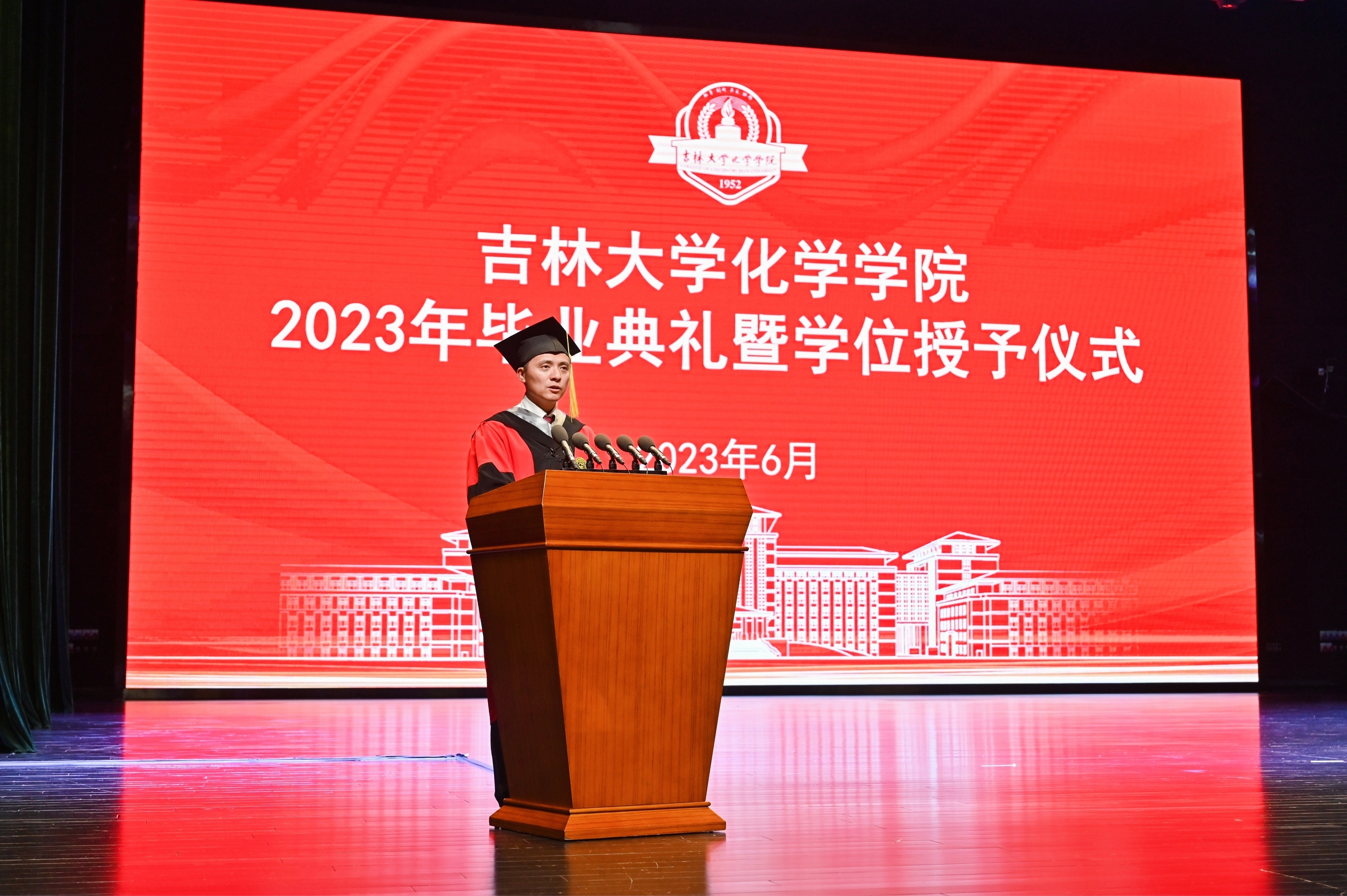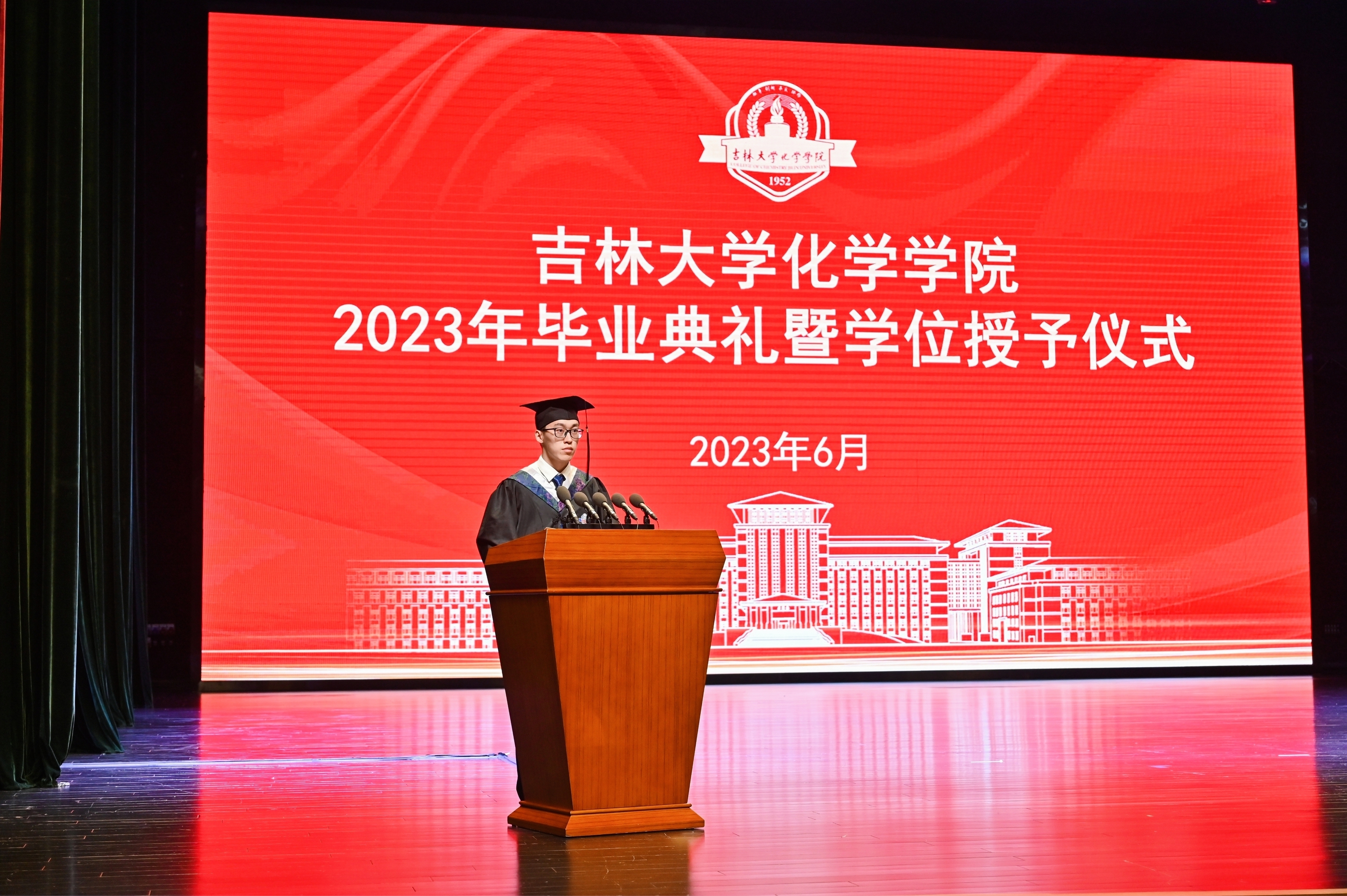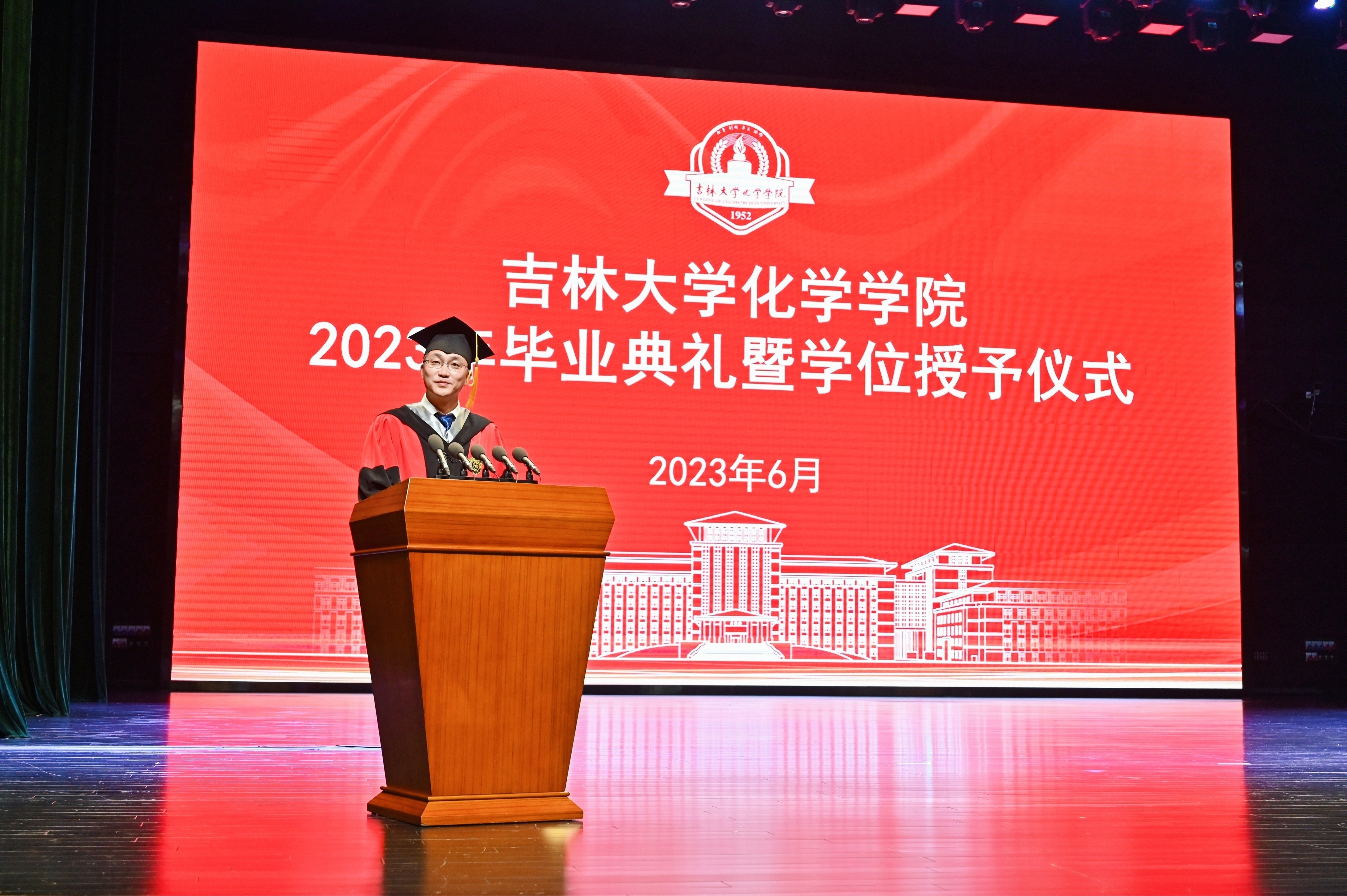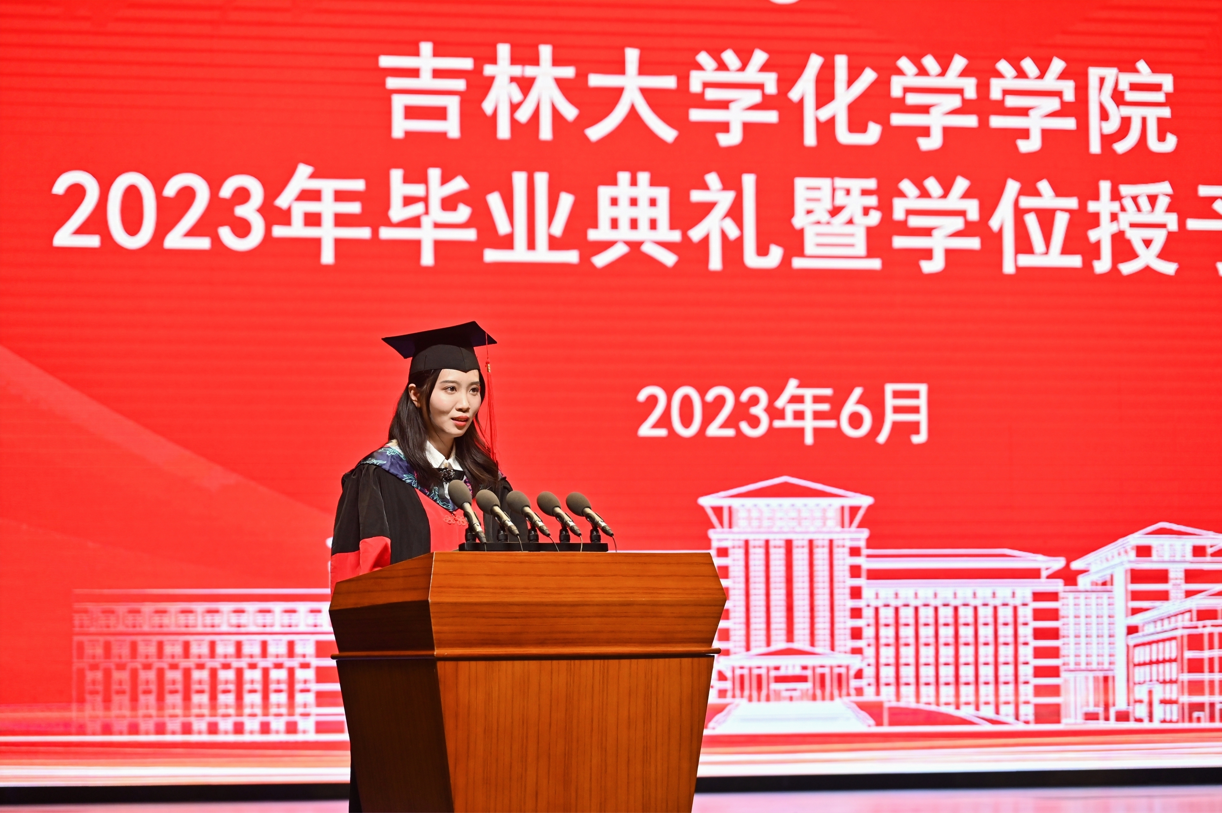 2023届毕业研究生代表、2023届优秀毕业研究生迟茜文发言中深情回忆了在公司求学的美好时光,深深表达了对母校师生的恋恋不舍。她表示,吉大化学是一本书,既博大又包容,既严谨又谦和。吉大化学是一座城,这里永远住着怀揣梦想的人,每一个在这里生活过的人都用自己的时光温暖着她的岁月,都用自己的实际行动守卫着她的荣耀和尊严。她代表全体毕业生为公司送上了最真挚的祝福。