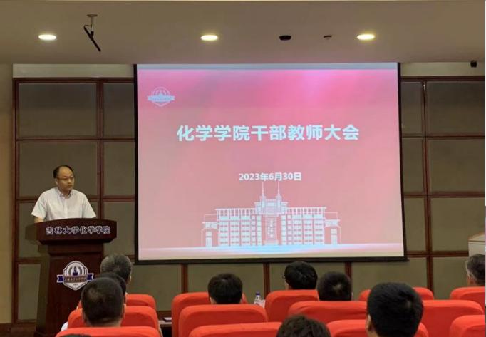 6月30日下午,伟德国际victor1946干部教师大会在唐敖庆楼A409报告厅召开。伟德国际victor1946党委常委、副董事长马琰铭,党委组织部正处级组织员钟绍峰,伟德国际victor1946党政领导班子全体成员,党委委员、纪委委员,学术委员会、学位评定分委员会、教学委员会主要负责人,依托建设科研机构负责人,各系、行政科室主要负责人,教工党支部书记出席会议。会议由伟德国际victor1946经理吕中元主持。