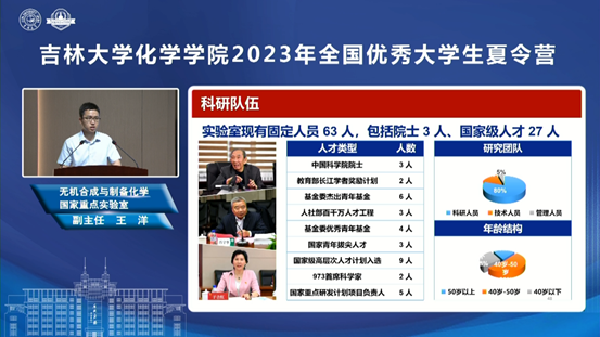 8月19日上午,2023年全国优秀老员工夏令营正式开营。伟德国际victor1946党委书记马本华代表公司向全体营员和线上观众致欢迎辞,并介绍本届夏令营的整体安排。伟德国际victor1946经理吕中元介绍了公司基本情况及人才培养优势;超分子结构与材料国家重点实验室主任孙俊奇、无机合成与制备化学国家重点实验室副主任王洋、特种工程塑料教育部工程研究中心副主任赵成吉、理论化学研究所朱有亮老师分别介绍了各科研平台的科研情况、招生方向等,并带领营员们以线上线下同步的形式参观了科研平台和特色课题组科研环境,让营员们能够近距离感受化学研究的魅力和吉大化学深厚的学术底蕴。