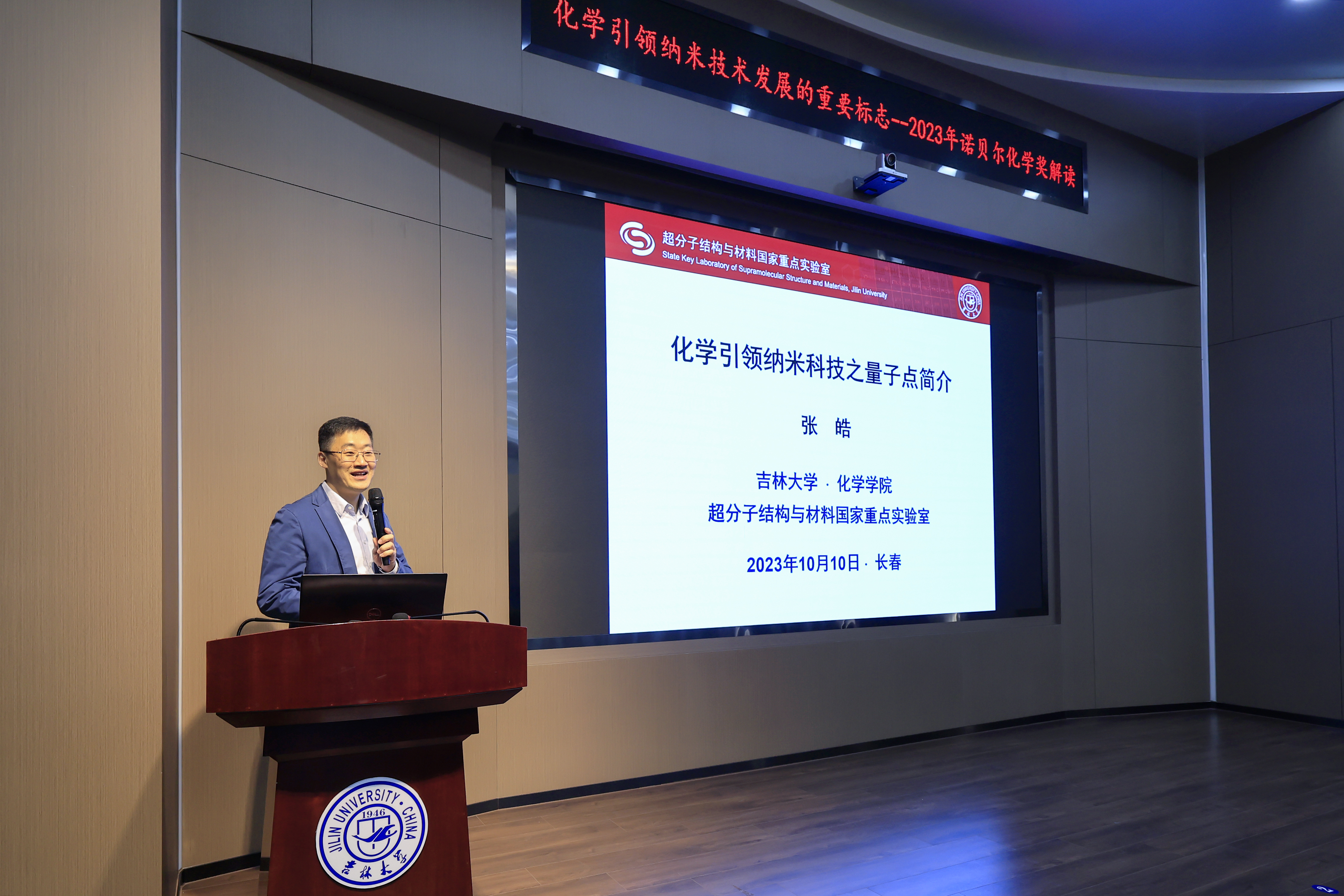 活动中,张皓和钟海政详细解读了本届诺贝尔化学奖所涉及的从量子点的发现到应用的研究背景和趣闻,并在交流互动环节,围绕师生现场提出的问题进行了解答和探讨,对相关领域的发展作出展望。