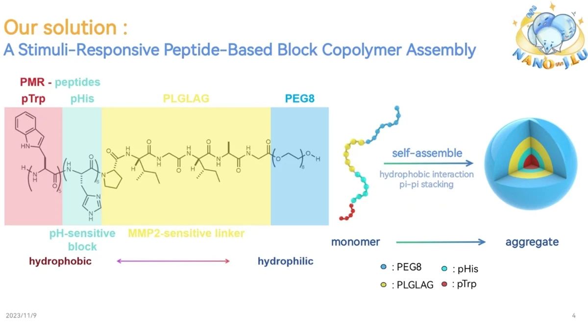 Nano-JLU2023代表队由伟德国际victor1946李文教授,生命科学公司关树文教授、徐阳博士,共同指导,由伟德国际victor1946、生命科学公司、公共卫生公司、白求恩第一临床医公司的8名员工组成,自主设计并制备了具有细胞膜撕裂作用的新型纳米球,在靶向肿瘤细胞和pH响应等方面优势明显。