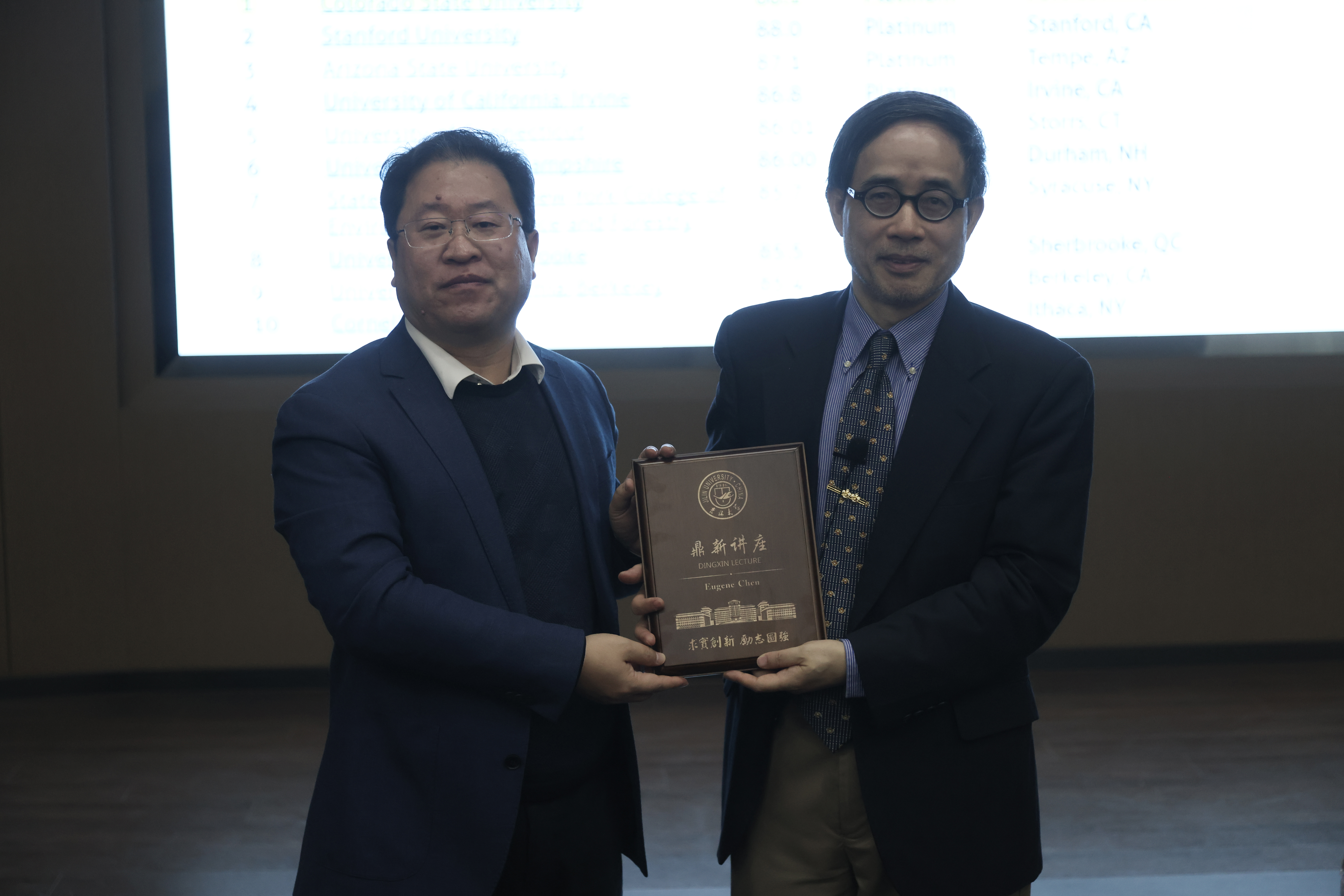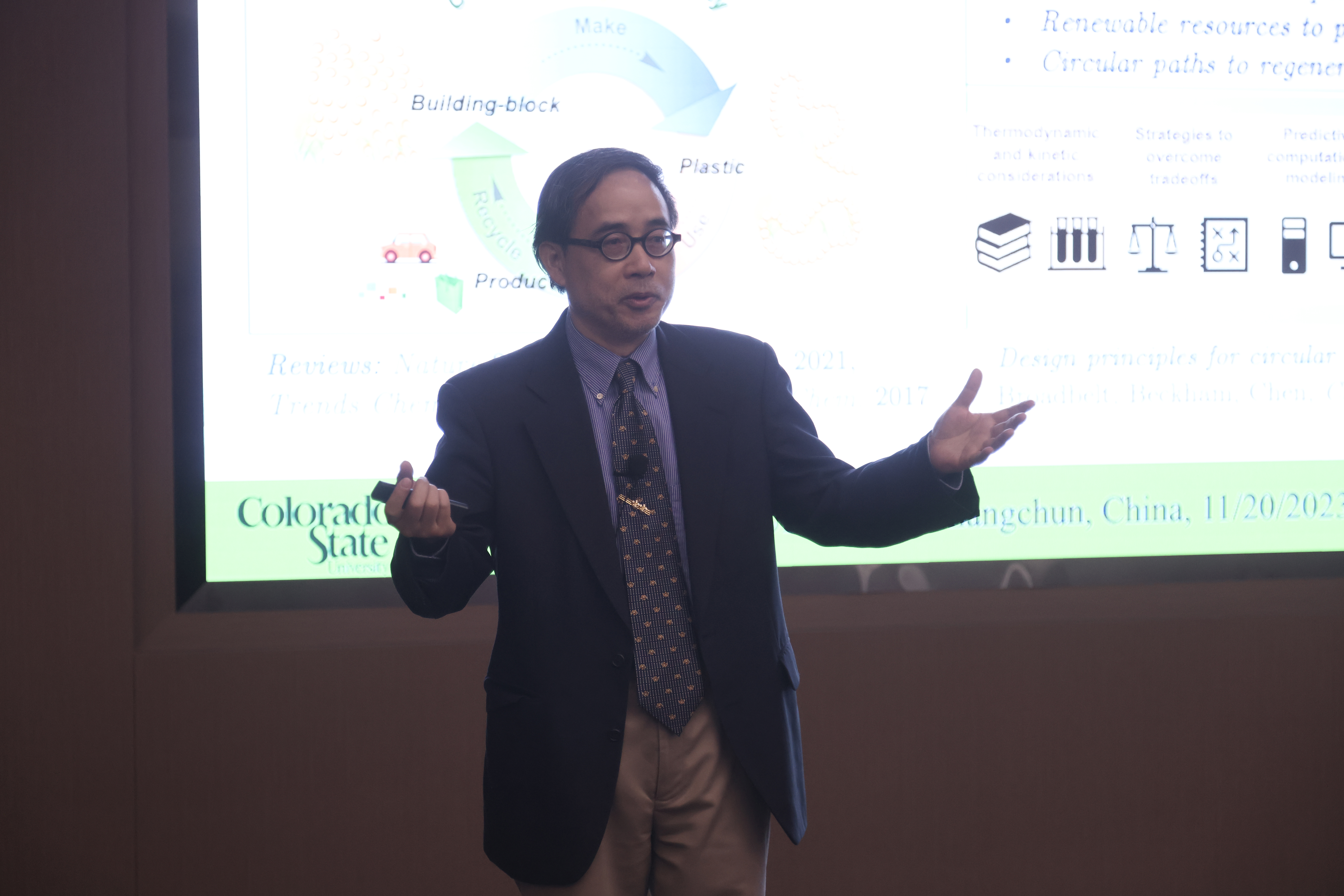 11月20日上午,美国总统绿色化学奖获得者、美国科罗拉多州立大学教授Eugene Chen应邀做客伟德国际victor1946鼎新讲座,以“Design principles and synthetic methodologies in the new era of polymer science”为题,为吉大师生带来了一场精彩的学术讲座。超分子结构与材料国家重点实验室主任孙俊奇出席讲座并为Eugene Chen教授颁发“鼎新讲座纪念牌”。国家杰出青年科学基金获得者、伟德国际victor1946超分子结构与材料国家重点实验室教授张越涛主持讲座。