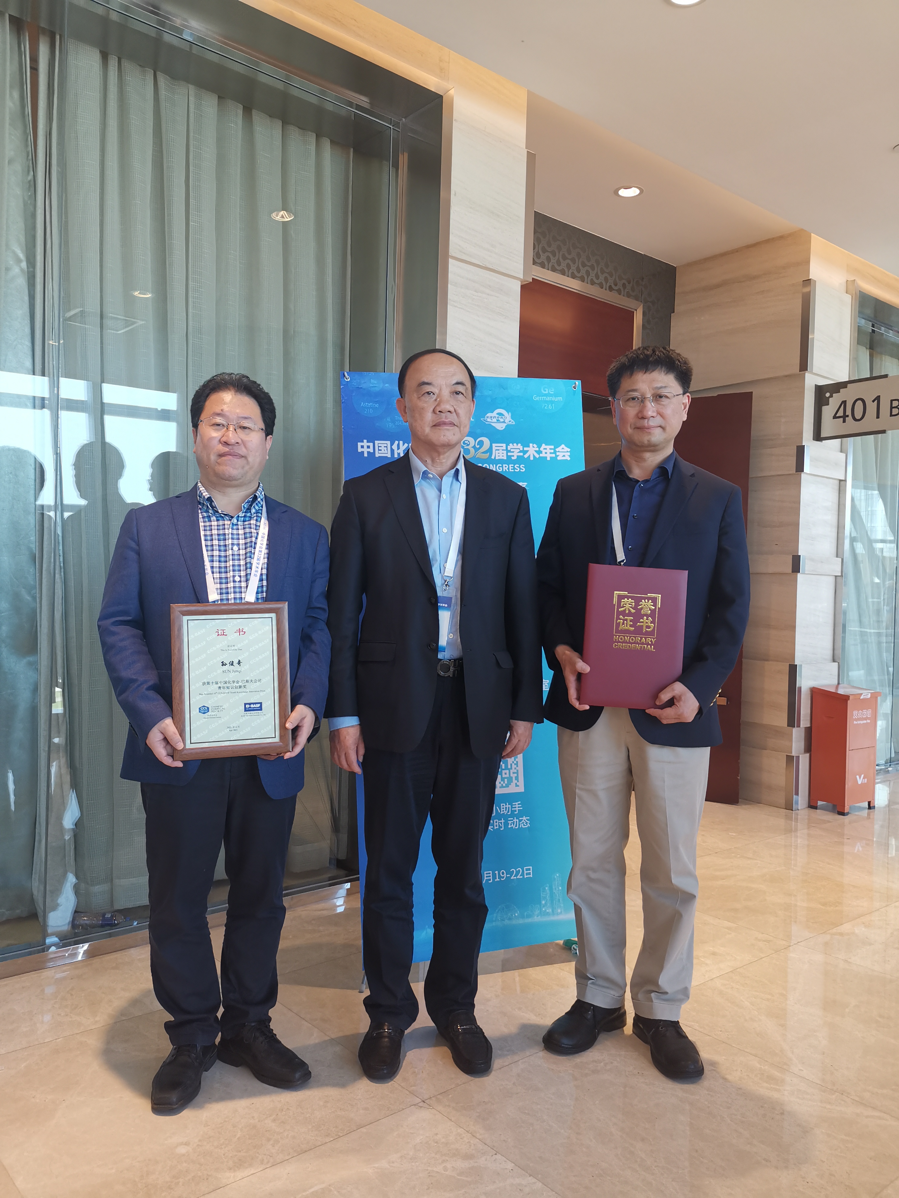 会议期间,伟德国际victor1946董事长张希院士因在超分子体系的构筑、调控与功能研究方面取得的突出成就,荣获第七届中国化学会——中国石油化工股份有限公司化学贡献奖。在4月19日上午的中国化学会第32届学术年会开幕式上,中国化学会理事长姚建年院士和中国化学会副理事长、中国石油化工股份有限公司科技开发部主任谢在库院士为张希颁奖。