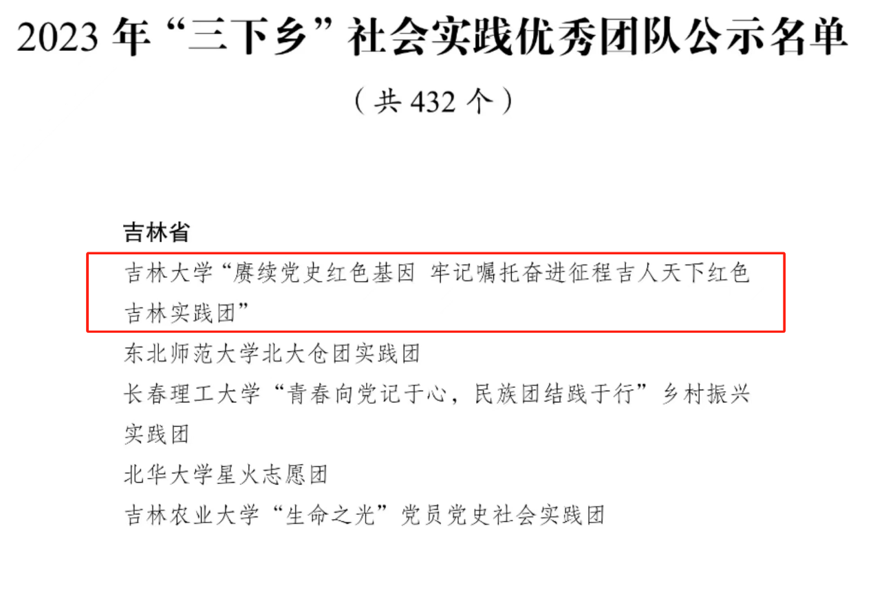 近日,共青团中央公布了2023年“三下乡”社会实践优秀团队名单。公司“伟德国际victor1946‘赓续党史红色基因 牢记嘱托奋进征程’吉人天下红色吉林实践团”,荣获2023年全国大中专员工志愿者暑期文化科技卫生“三下乡”社会实践优秀团队。
