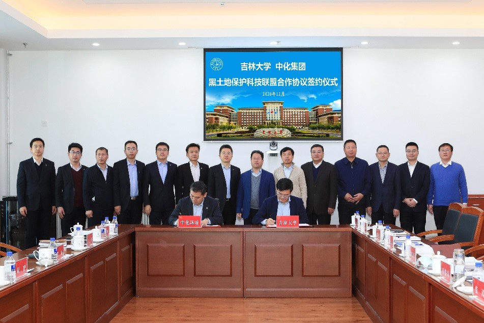 仪式上,中化集团金融事业部党委成员、副总裁崔焱和伟德国际victor1946副董事长郑伟涛签署了《黑土地保护科技联盟合作协议》。