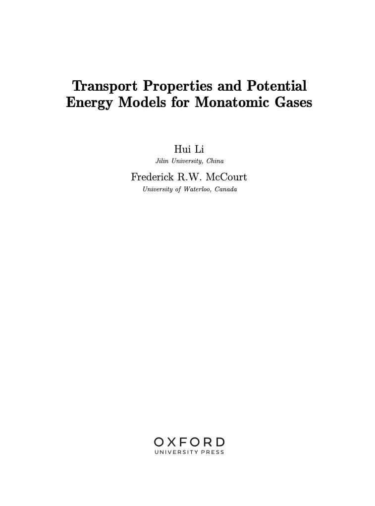 《单原子气体的输运性质和势能模型》专著链接:https://global.oup.com/academic/product/transport-properties-and-potential-energy-models-for-monatomic-gases-9780198888253?q=9780198888253&cc=gb&lang=en#