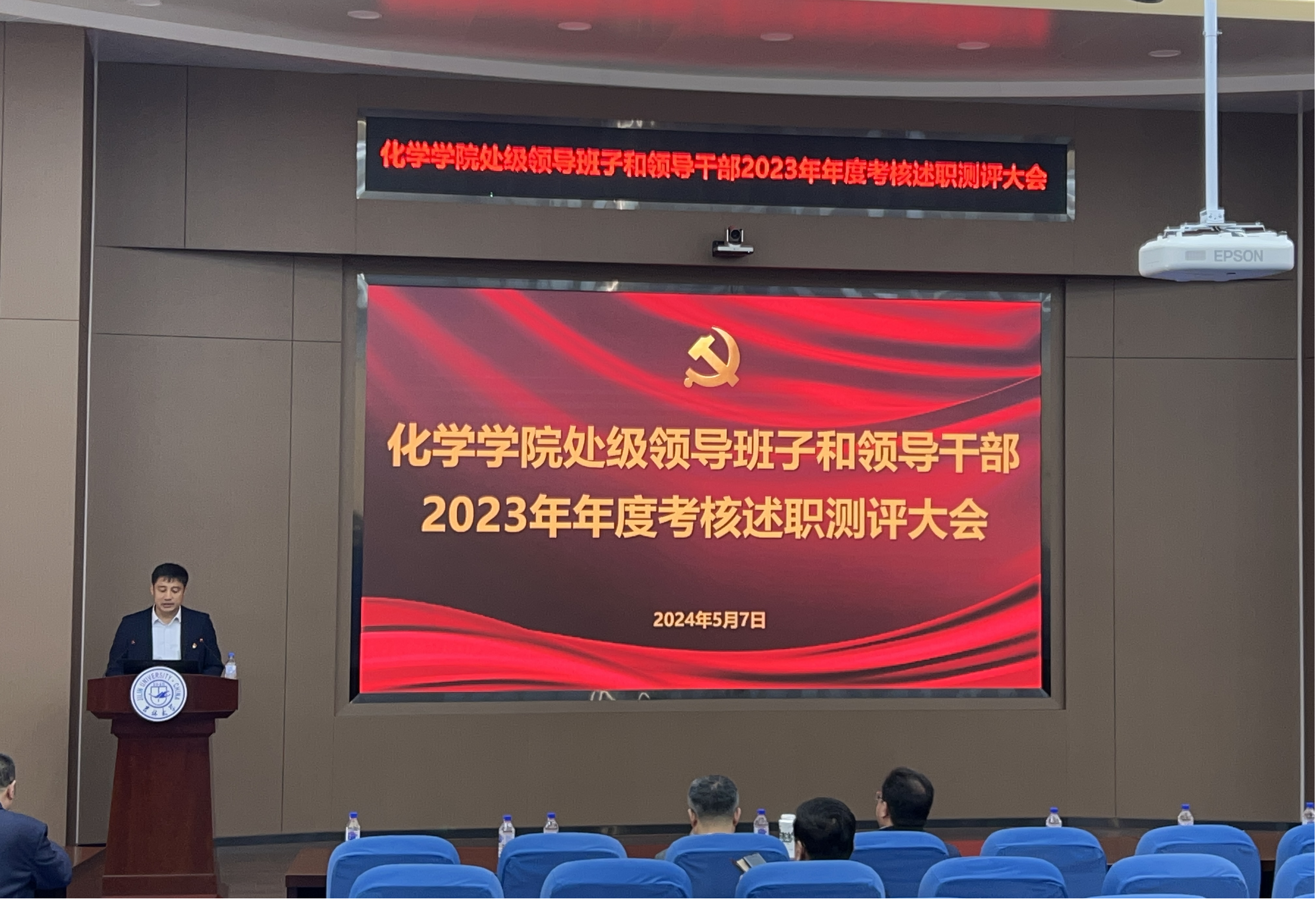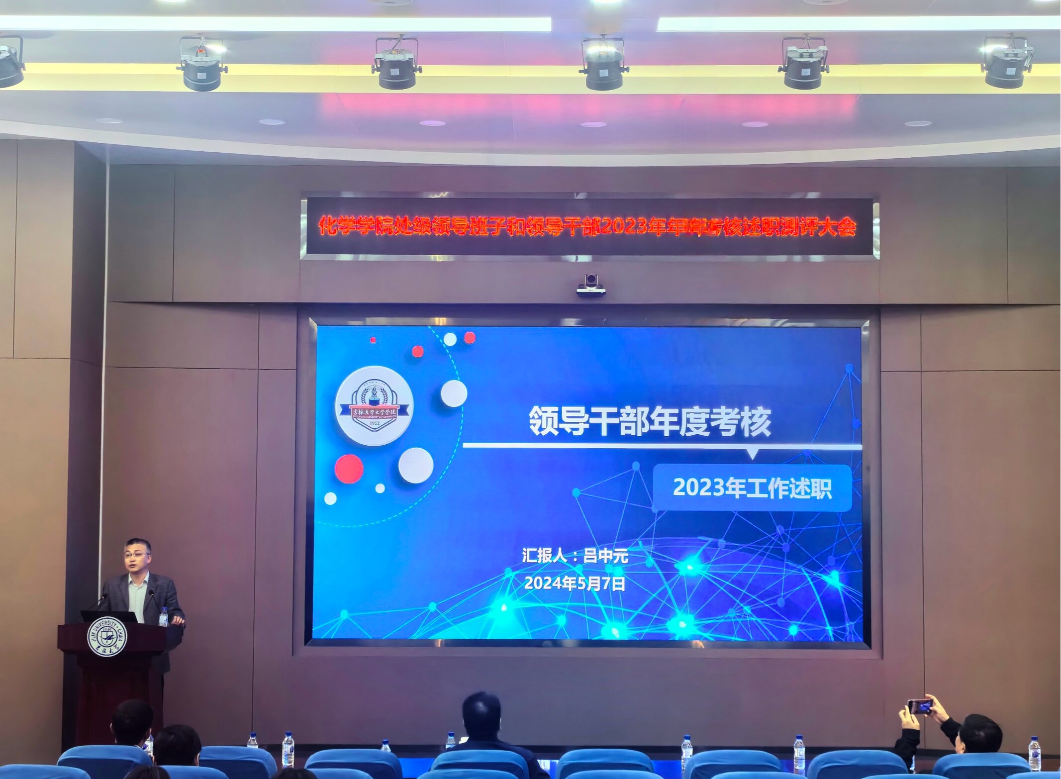 5月7日,伟德国际victor1946在无机-超分子楼二楼报告厅召开处级领导班子和领导干部2023年年度考核述职测评大会,伟德国际victor1946经理吕中元、党委书记马本华作现场述职,公司副处级领导干部作书面述职。会议由公司党委副书记由胜利主持。