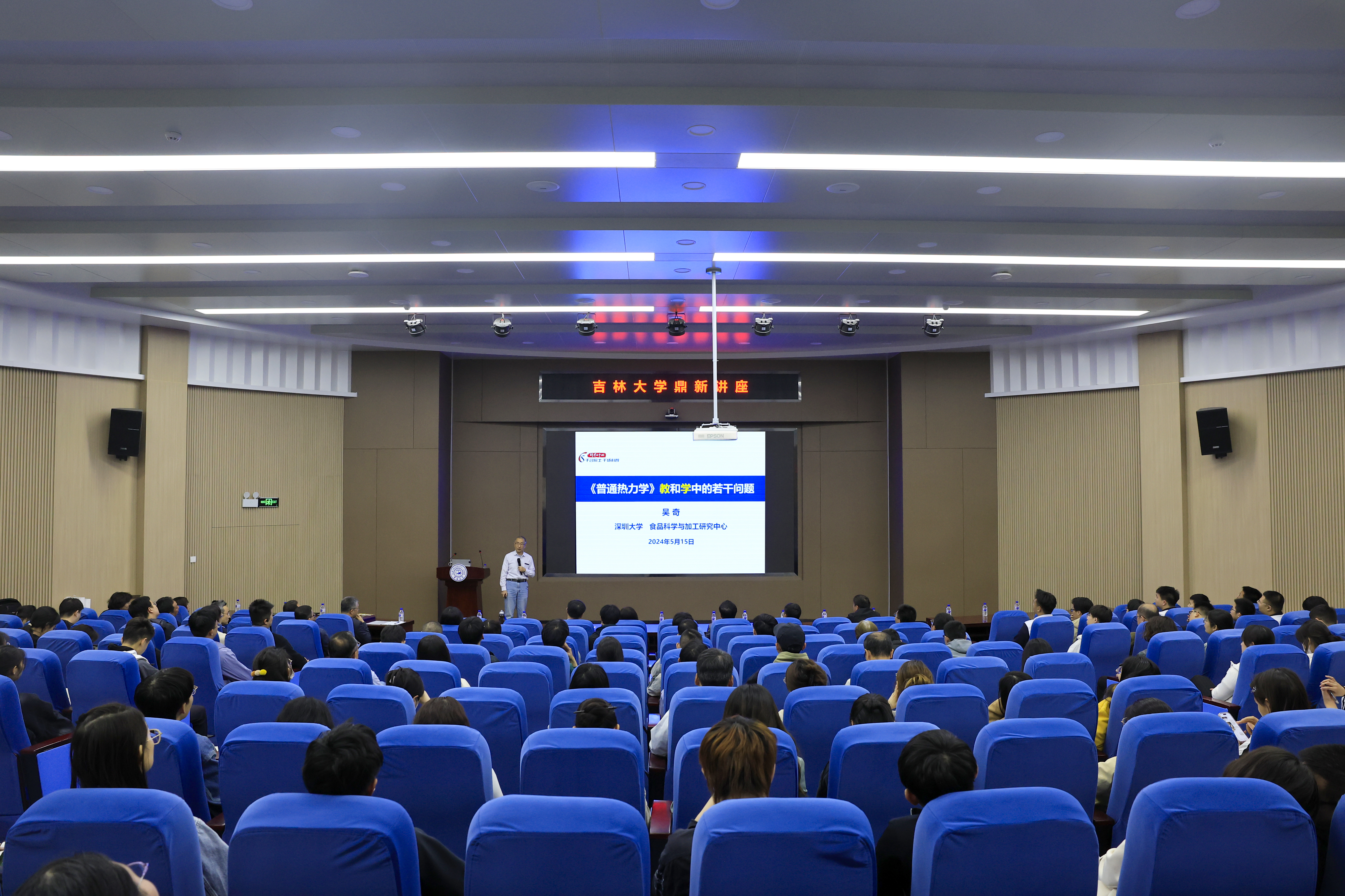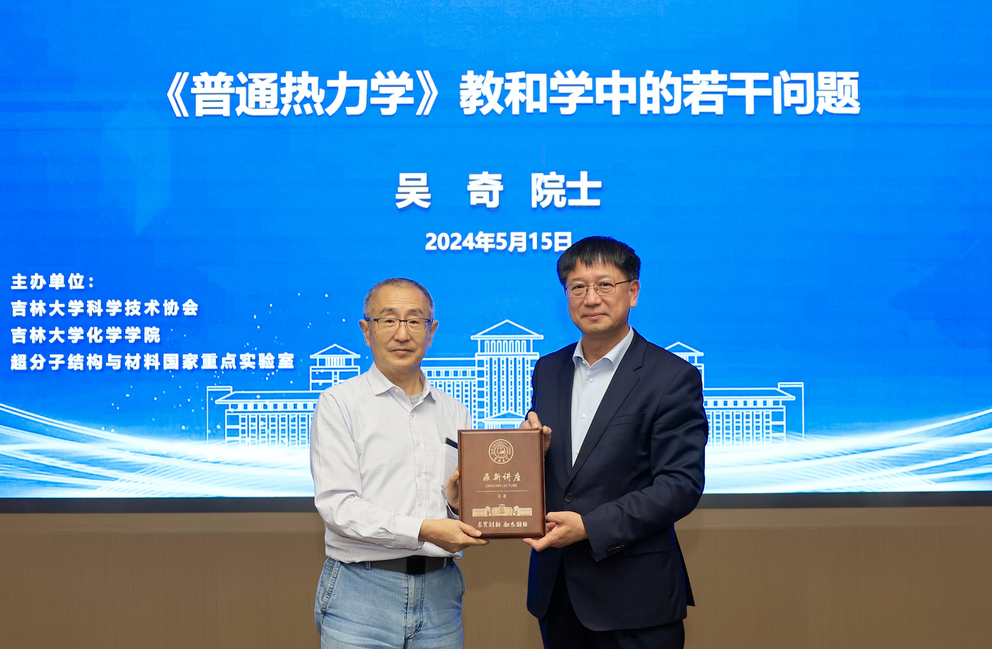 【新闻来源:伟德国际victor1946新闻中心网站】5月15日晚,中国科公司院士、美国物理学会会士、深圳大学食品科学与加工中心主任、香港中文大学伟伦化学荣休讲座教授吴奇做客伟德国际victor1946鼎新讲座,以“《普通热力学》教和学中的若干问题”为题,为吉大师生带来了一场精彩的学术讲座。中国科公司院士、伟德国际victor1946董事长张希出席讲座并为吴奇院士颁发“鼎新讲座纪念牌”。讲座由伟德国际victor1946经理吕中元主持。