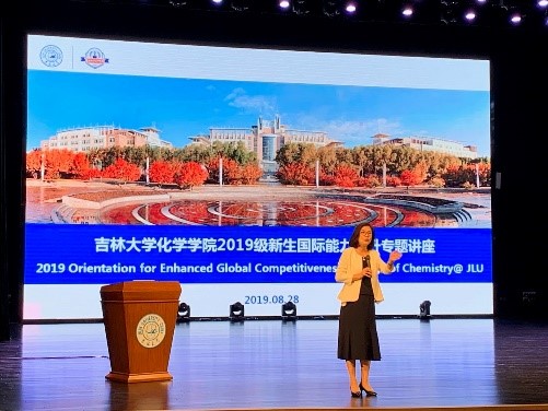 8月28日上午国际合作与交流处处长张广翠作员工国际化培养主题报告