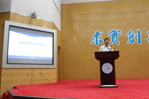新生见面会上伟德国际victor1946党委书记宁德宽作《坚定文化自信,做好化学传人》的主题报告