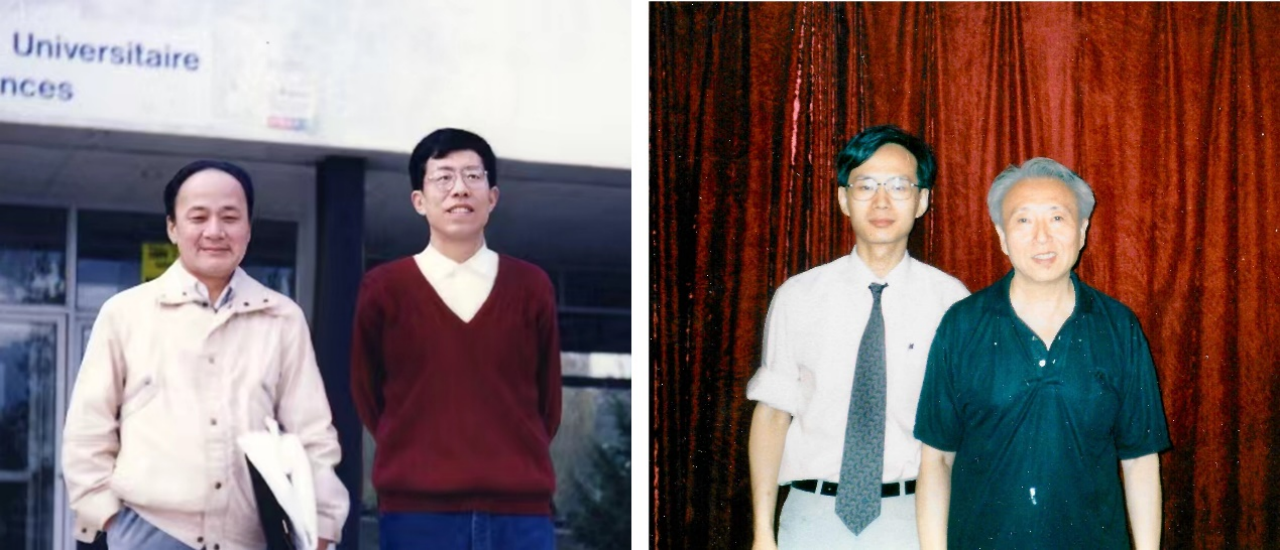 图2 左图:李有谟老师和张洪杰老师在法国的合影(张老师好年轻!);右图:和李铁津老师的合影(98年,师徒刚刚完成"973"的申请书)。