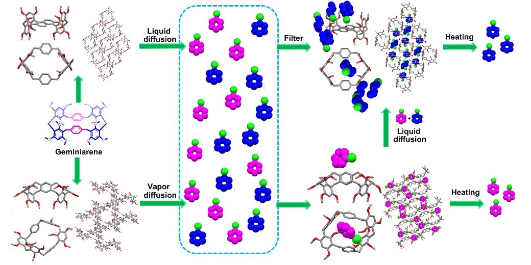 2019年7月,杨英威教授课题组在《Journal of the American Chemical Society》杂志上发表了题为“Geminiarene: Molecular Scale Dual Selectivity for Chlorobenzene and Chlorocyclohexane Fractionation”的研究论文,报道了一类新颖的超分子大环芳烃,即双子芳烃(Geminiarene)。