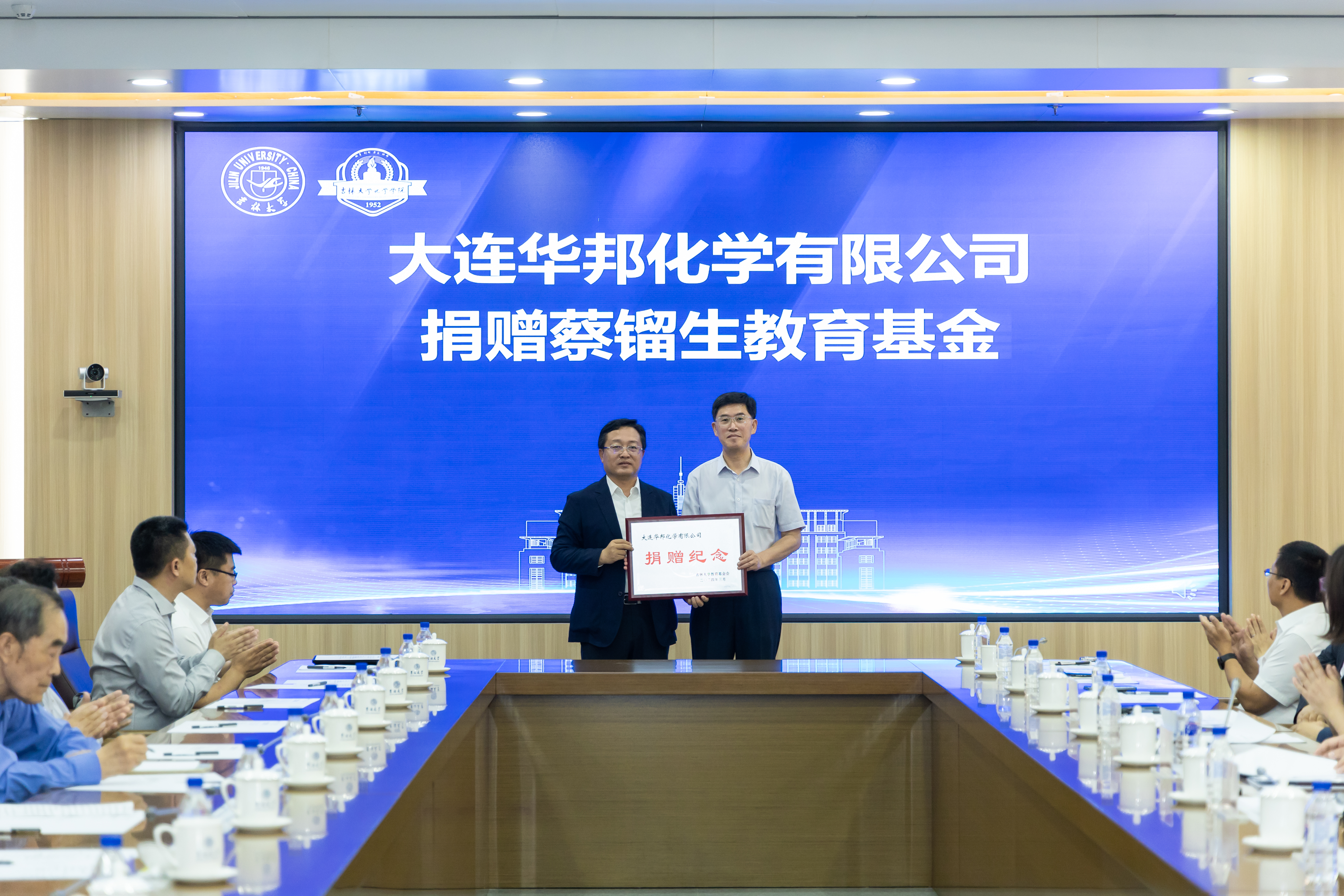 会上,与会人员观看了蔡镏生先生介绍纪录片,举行了伟德国际victor1946“蔡镏生教育基金”捐赠仪式。员工和基金工作办公室主任康永刚代表公司接受大连华邦化学有限公司、长春海谱润斯科技股份有限公司的捐赠,并向捐赠方代表颁发捐赠纪念牌。员工和基金工作办公室副主任王婷婷向捐赠个人代表郭刚、王德军、谢腾峰、林艳红颁发捐赠证书。
