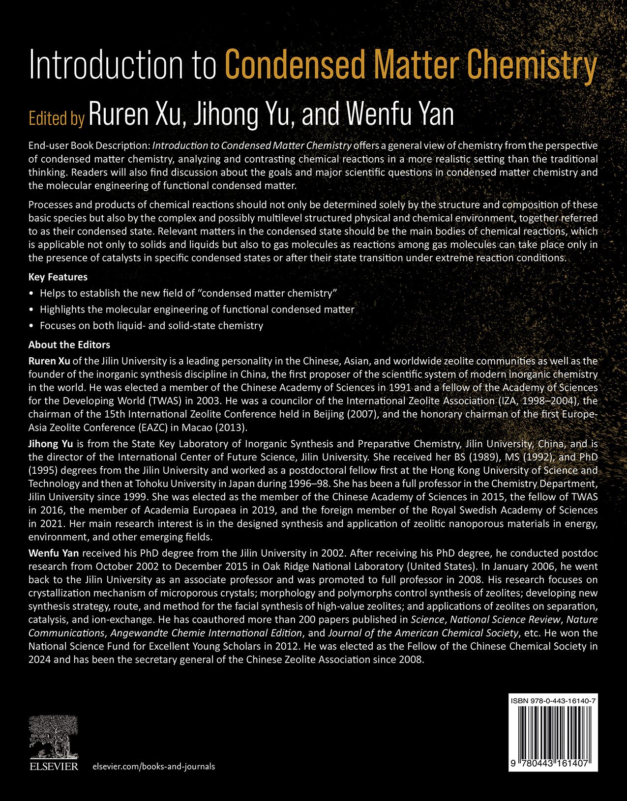 近日,公司伟德国际victor1946徐如人院士、于吉红院士和闫文付教授主编的专著《Introduction to Condensed Matter Chemistry》由国际权威学术出版机构Elsevier正式出版,该书是国际上第一部关于凝聚态化学的著作。