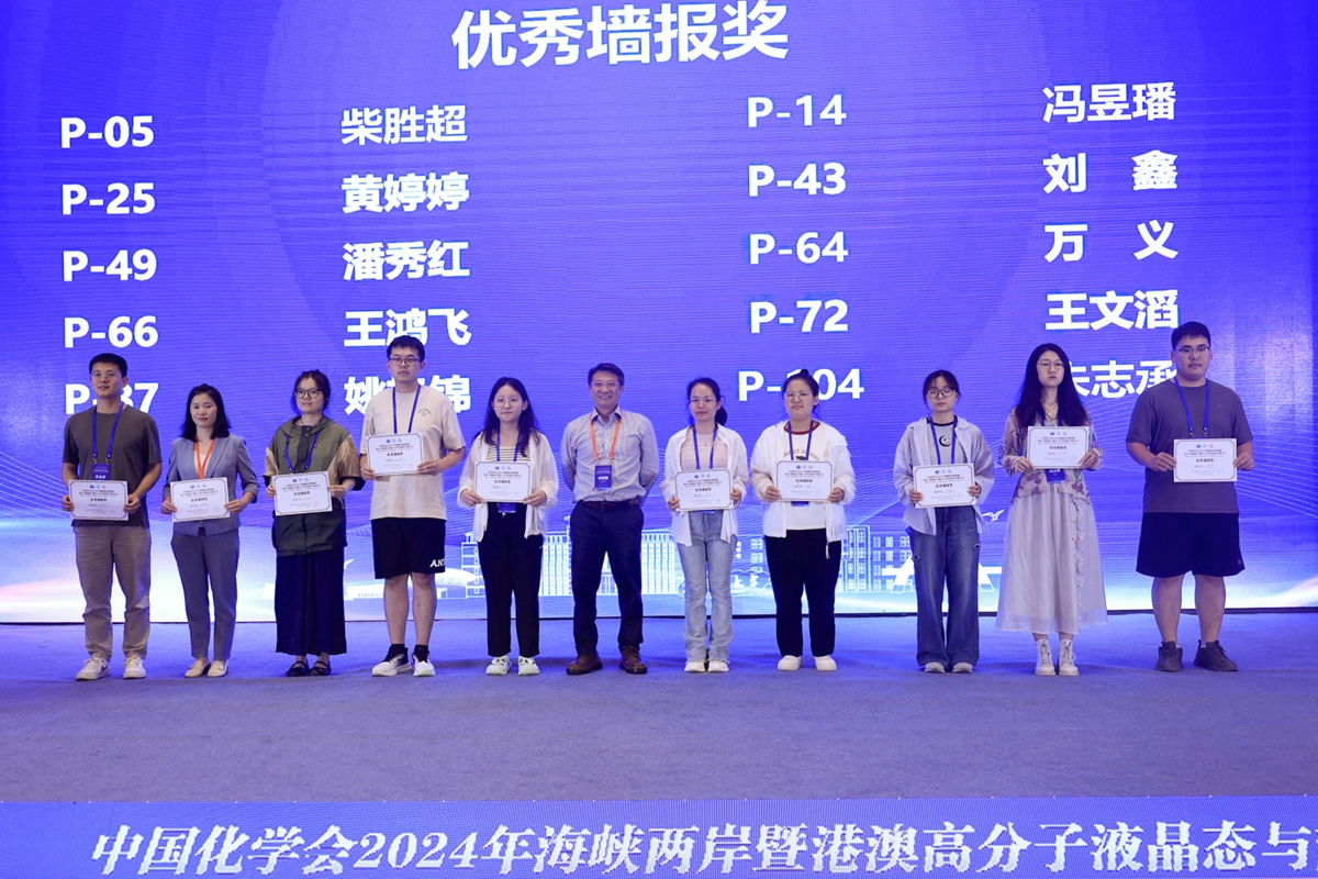 在为期两天的学术交流与研讨中,唐智勇、何荣铭、王钻开、郭绍伟、孙俊奇先后作了题为“纳米自组装多孔膜”“嵌段高分子和手性嵌段高分子自组装”“基于固液特征尺度匹配的超材料设计及应用”“基于软物质材料建构阿基米德镶嵌结构”和“可逆交联聚合物”5个精彩的大会报告。在6个主题论坛中,与会专家学者围绕“液晶高分子的分子工程学”“超分子体系的组装与识别”“自组装体系的理论与表征”“液晶高分子功能材料”“可逆交联与自适应聚合物材料”和“生物超分子组装与功能”作了170个邀请、口头和快闪报告,并展示交流了104份墙报。组委会从中评选出了2个CCS Chemistry优秀墙报,10个会议优秀墙报,以及12个优秀的快闪报告。闭幕式上,张希、何荣铭、孙俊奇分别为获奖代表颁发证书。伟德国际victor1946化公司经理吕中元宣布由香港理工大学承办下一届会议。
