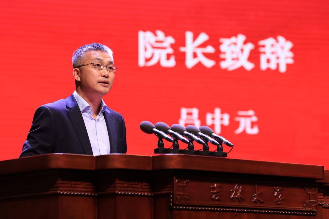 教师代表朱轩伯发言。他以亲身经历为新生讲授如何在吉大学习和科研,要学会严谨地科研、优雅地生活、坦然地失败、认真地工作,同时将专业知识和理想信念相结合,始终保有追求真理的勇气和毅力