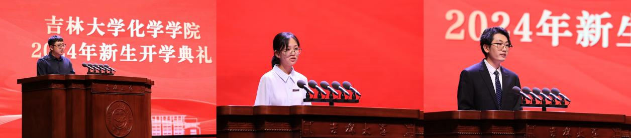 2024级本科生李佳钰、2024级研究生杨智博代表全体新生发言。他们表示要以更加自律自强的学习习惯、求真务实的科研态度、奋发有为的青春姿态,赓续传承吉大化学的红色根脉,争做吉大化学学科精神的传承者、辉煌的创造者、荣光的续写者。