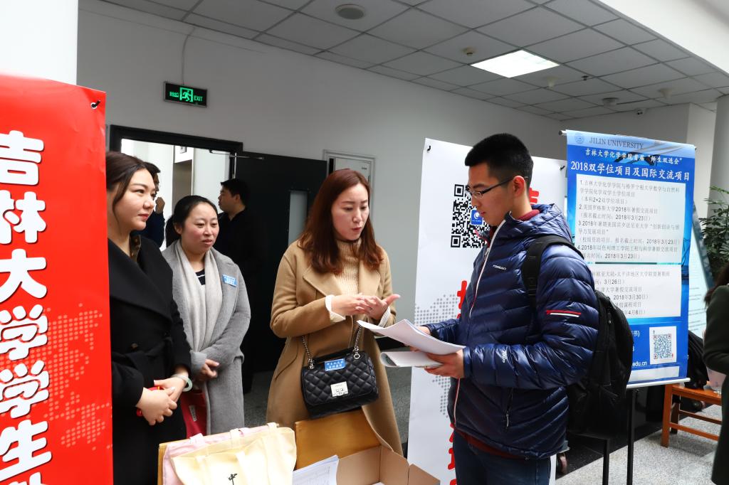 活动现场不仅展示了宣讲单位的招生宣传海报,更有以中国科公司院士领衔的近百名教授、博士生导师亲临现场向同学们讲解课题组研究方向、就业前景、人才培养思路、并现场接收员工简历,活动过程中师生面对面交流科研工作,现场气氛热烈、学术氛围浓郁,在公司国际合作与交流处的展位前,工作人员详细介绍了针对化学学科本科生、研究生的海外交流项目,发放宣传材料150余份。