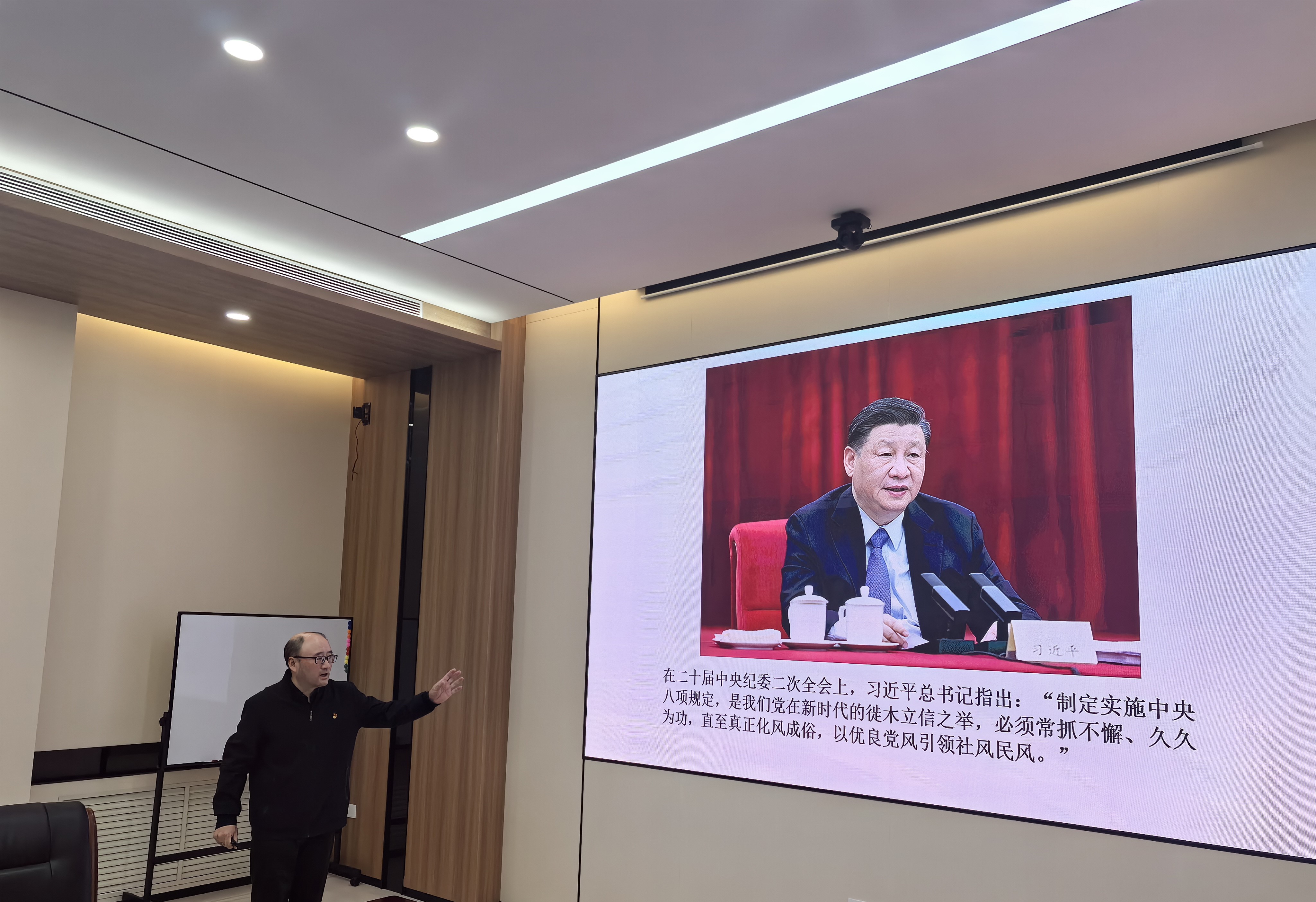 马本华结合报告内容强调,全公司党员要深入领会中央八项规定精神实质,切实增强纪律意识、规矩意识,在日常工作和生活中,强化廉政风险排查,建立“学、查、改”闭环机制,营造风清气正的学科生态和育人环境。