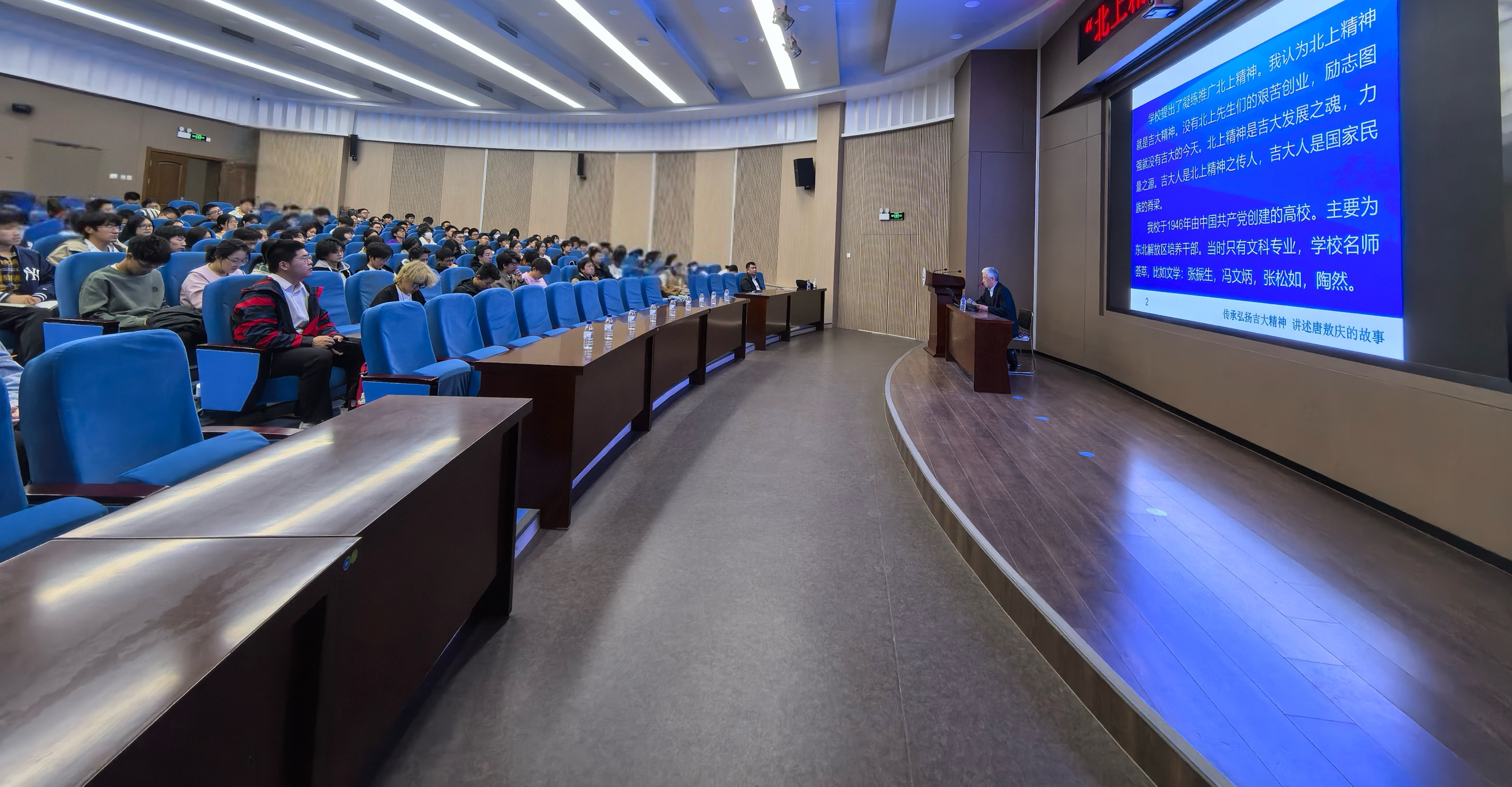 报告中,王英老师回顾了其在伟德国际victor1946董事长办公室工作期间,经历过的与时任伟德国际victor1946董事长唐敖庆先生的点滴逸事,带领同学们重温唐敖庆先生教学、治学的动人故事,以及唐敖庆先生至诚报国、严谨求实的精神。王英老师强调,北上精神就是吉大精神。没有先生们的艰苦创业、励志图强就没有吉大的今天。北上精神是吉大发展之魂、力量之源。吉大人是北上精神之传人,吉大人是国家民族的脊梁。他勉励同学们:要以唐敖庆、匡亚明、李四光、朱光亚、黄大年等为榜样,认真学习专业知识,传承发扬吉大精神,服务国家战略,勇攀科技高峰。