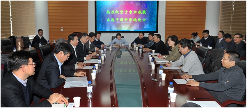 李元元首先代表全校师生员工向于吉红当选中国科公司院士表示祝贺,向培养和支持以于吉红为代表的年轻一代科研工作者成长成才的老一辈科学家致敬,向与于吉红共同奋斗的科研团队为公司学科发展所做出的贡献致谢。