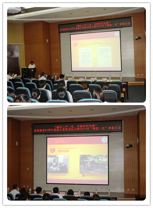2015年6月30日,伟德国际victor1946党委在无机超分子楼二楼圆形报告厅举行了庆祝建党94周年重温入党誓词仪式暨2015年“两优一先”表彰大会。副处级以上党员领导干部、教工党员、员工党员代表等200余人参加了大会,会议由公司党委副书记李勇同志主持。