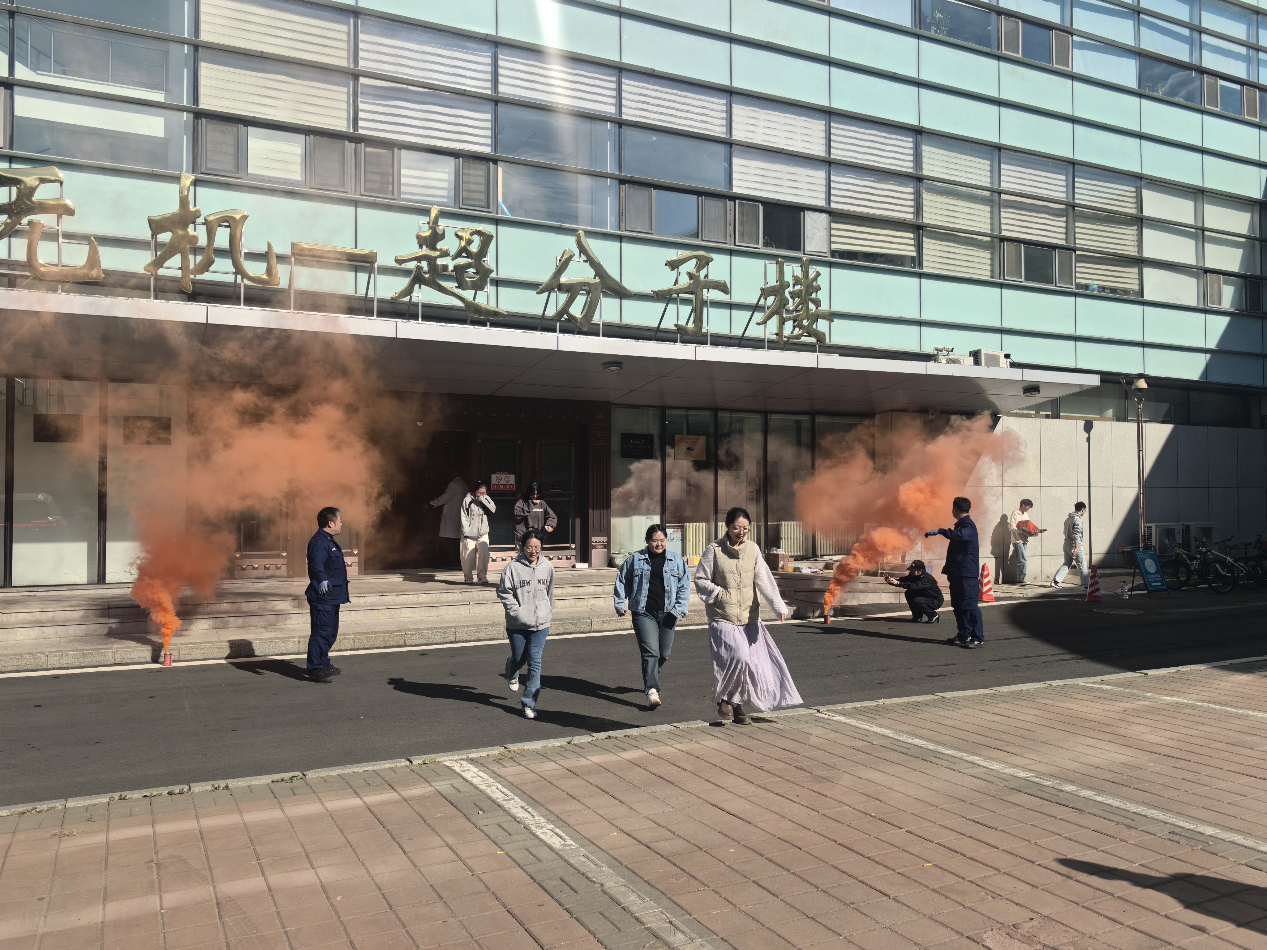 在应急疏散演练环节,模拟无机-超分子楼内突发火情,随着警报响起,演练指挥小组迅速启动应急预案,组织全楼师生有序疏散撤离。整个过程响应及时、组织周密、流程规范,有效检验了公司应对突发事件的协调与处置能力。