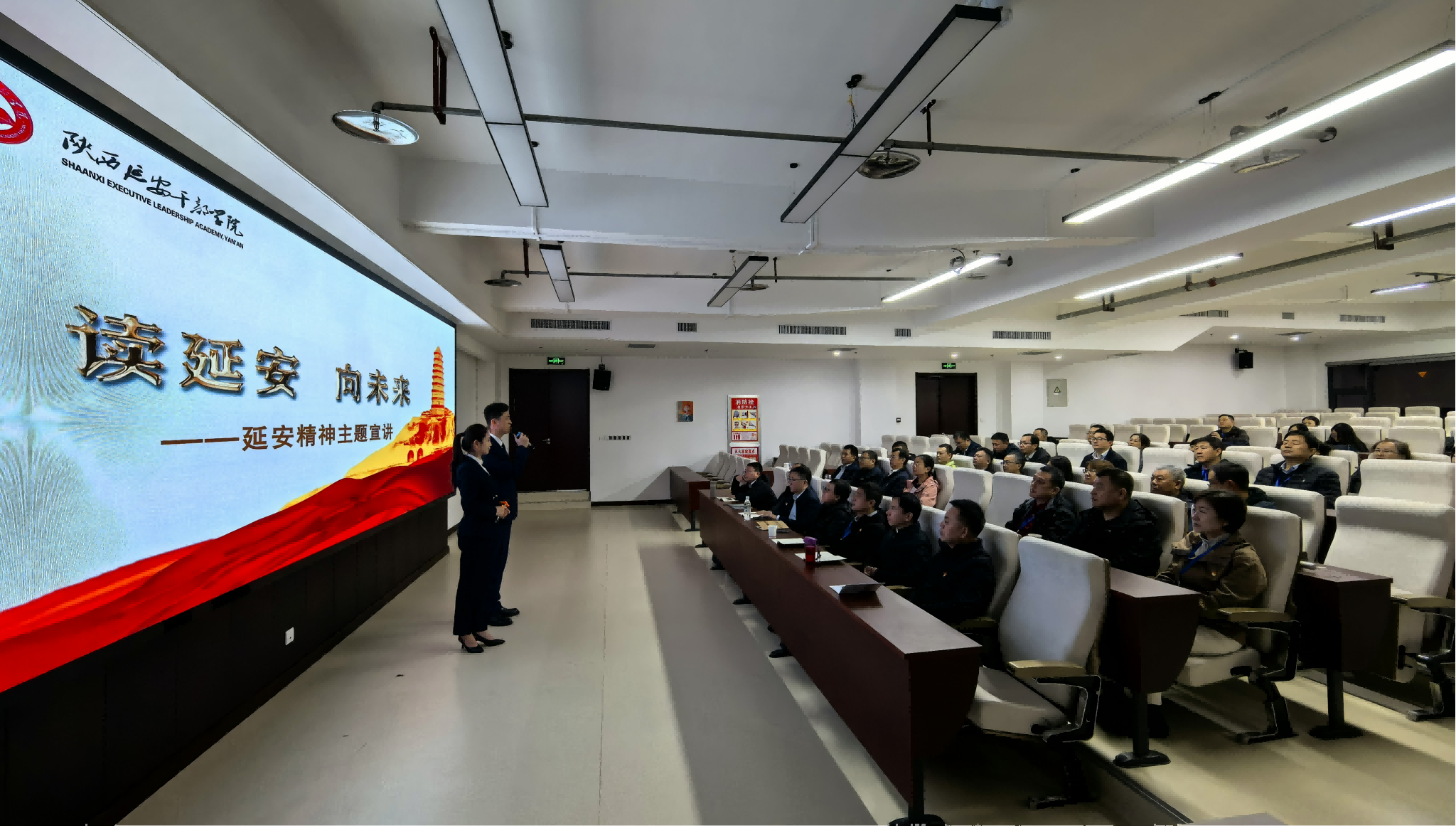 培训期间,学员通过专题教学、音像教学、“微党课”等形式深化理论学习。特别邀请陕西延安干部公司宣讲团的7名青年讲师作“读延安 向未来——延安精神主题宣讲”,围绕《延安的窑洞有马列主义》《做新时代白求恩精神的践行者》《毛泽东与毛岸英的家国父子情》《新时代最美奋斗者》《从“小鲁艺”迈向“大鲁艺”》等主题,结合珍贵历史影像和感人事迹,以微党课、红色家书诵读、配乐诗朗诵等形式讲述党的故事、革命故事、延安故事,深入解读了其中蕴含的自力更生、艰苦奋斗、实事求是、理论联系实际、全心全意为人民服务等精神实质,多维度展现延安精神的深刻内涵和时代价值,增强学习感染力,引发学员强烈共鸣。