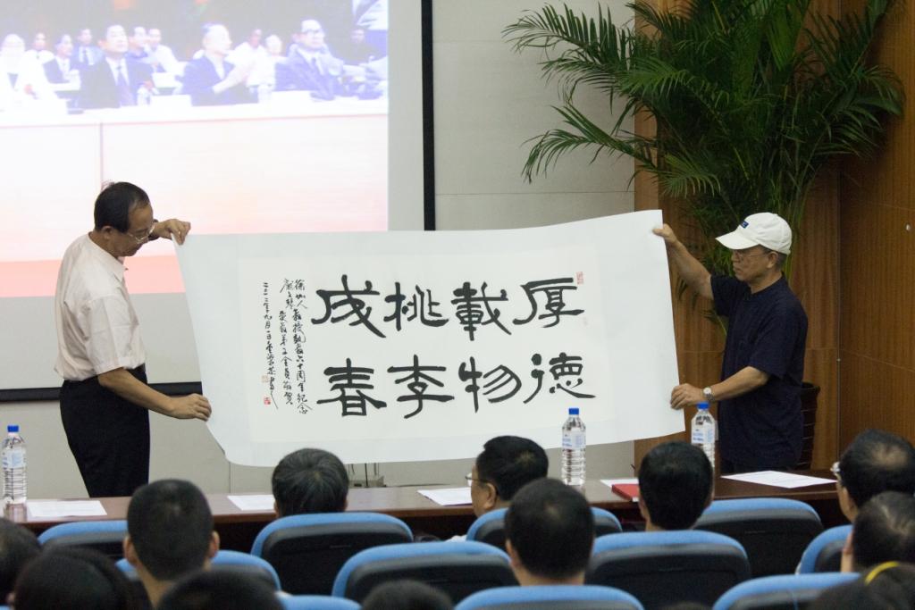 随后,上海交大陈接胜教授、浙江大学肖丰收教授、基金委计划局局长孟宪平和伟德国际victor1946李守贵教授等四位嘉宾作为师从徐如人院士的员工代表向徐院士及其夫人庞文琴教授赠送鲜花和字画,以表达对恩师的崇敬和庆贺之情。此外,中国化学会等多家研究院所也发来贺信向二老表示祝贺。
