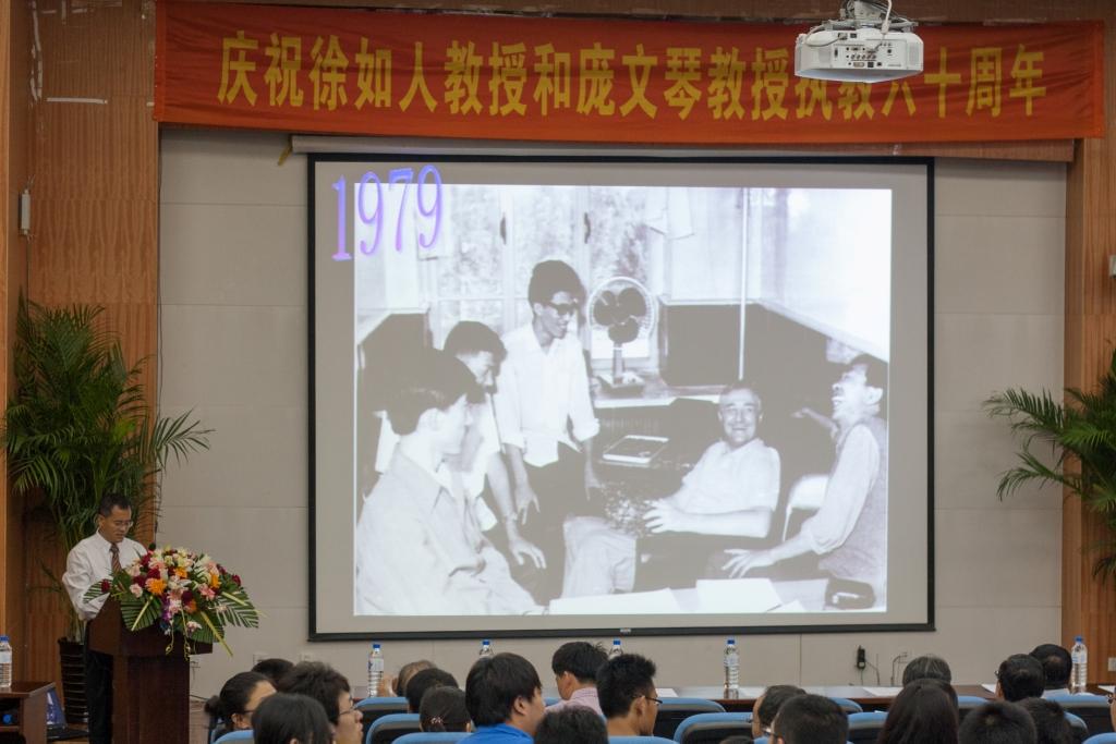 开幕式上,冯守华院士致辞,他首先对徐如人院士及其夫人庞文琴教授执教六十周年表示祝贺,然后高度赞扬了两位老师在执教六十年里的为人师表和在学术上的重大成就,号召大家以两位老师为楷模,向他们学习。