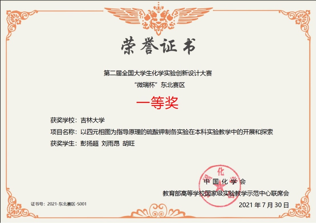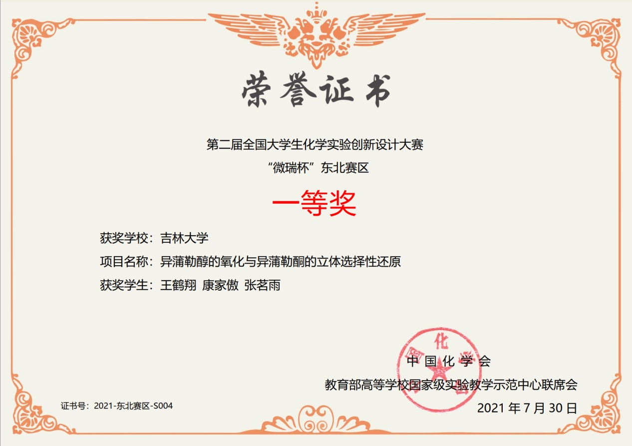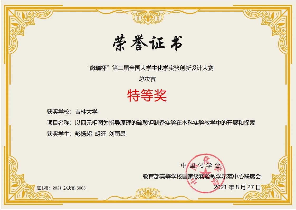 8月24–27日,第二届全国老员工化学实验创新设计竞赛总决赛在青岛科技大学举行,来自全国90所高校的90支队伍参加了本届比赛。由伟德国际victor1946彭扬超、胡旺、刘雨昂组成的参赛队(指导教师:范勇教授、朱万春教授),经过激烈角逐斩获特等奖,这也是伟德国际victor1946暨2019年荣获第一届总结赛特等奖后再获此项殊荣。伟德国际victor1946荣获“优秀组织单位奖”。