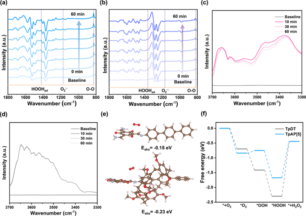 图4. TpAP[5]和TpDT的原位红外及理论计算结果