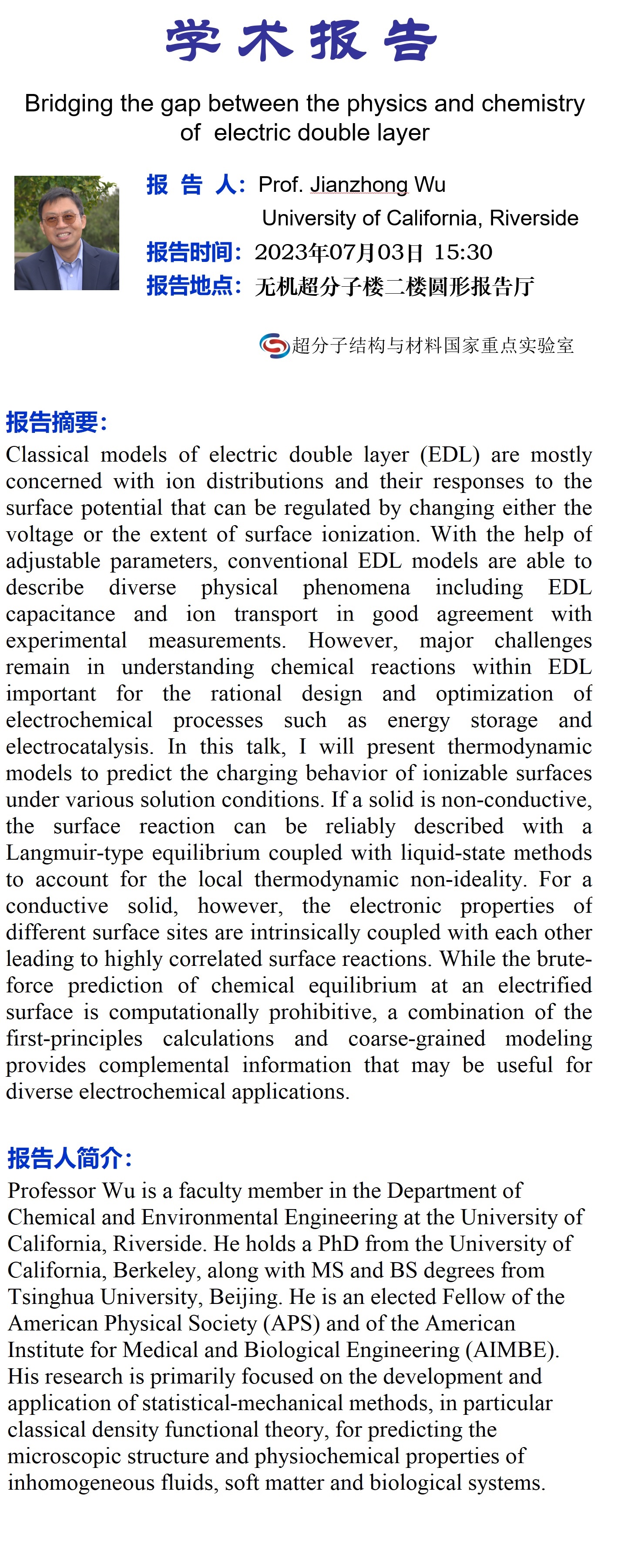 学术报告名称