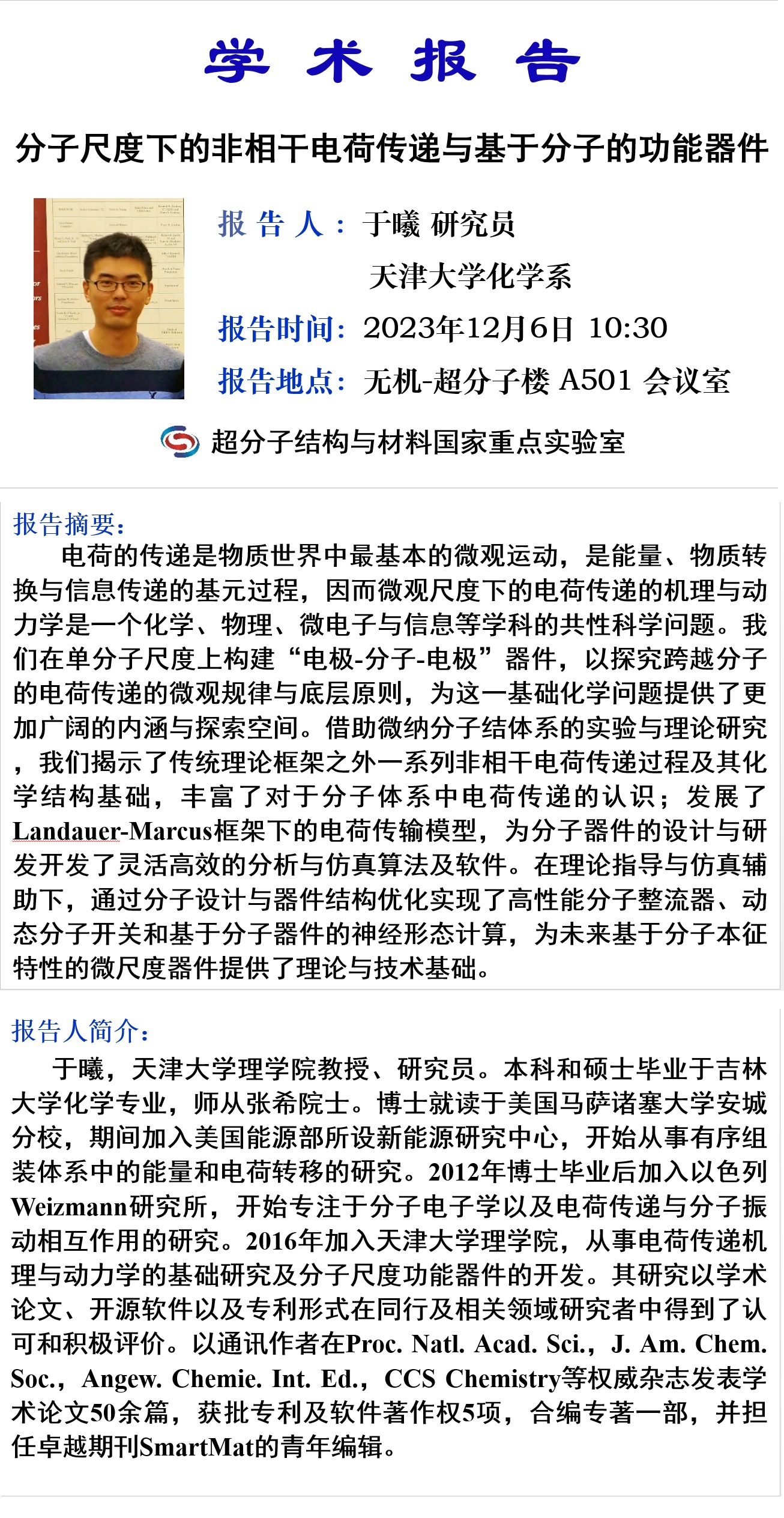 分子尺度下的非相干电荷传递与基于分子的功能器件