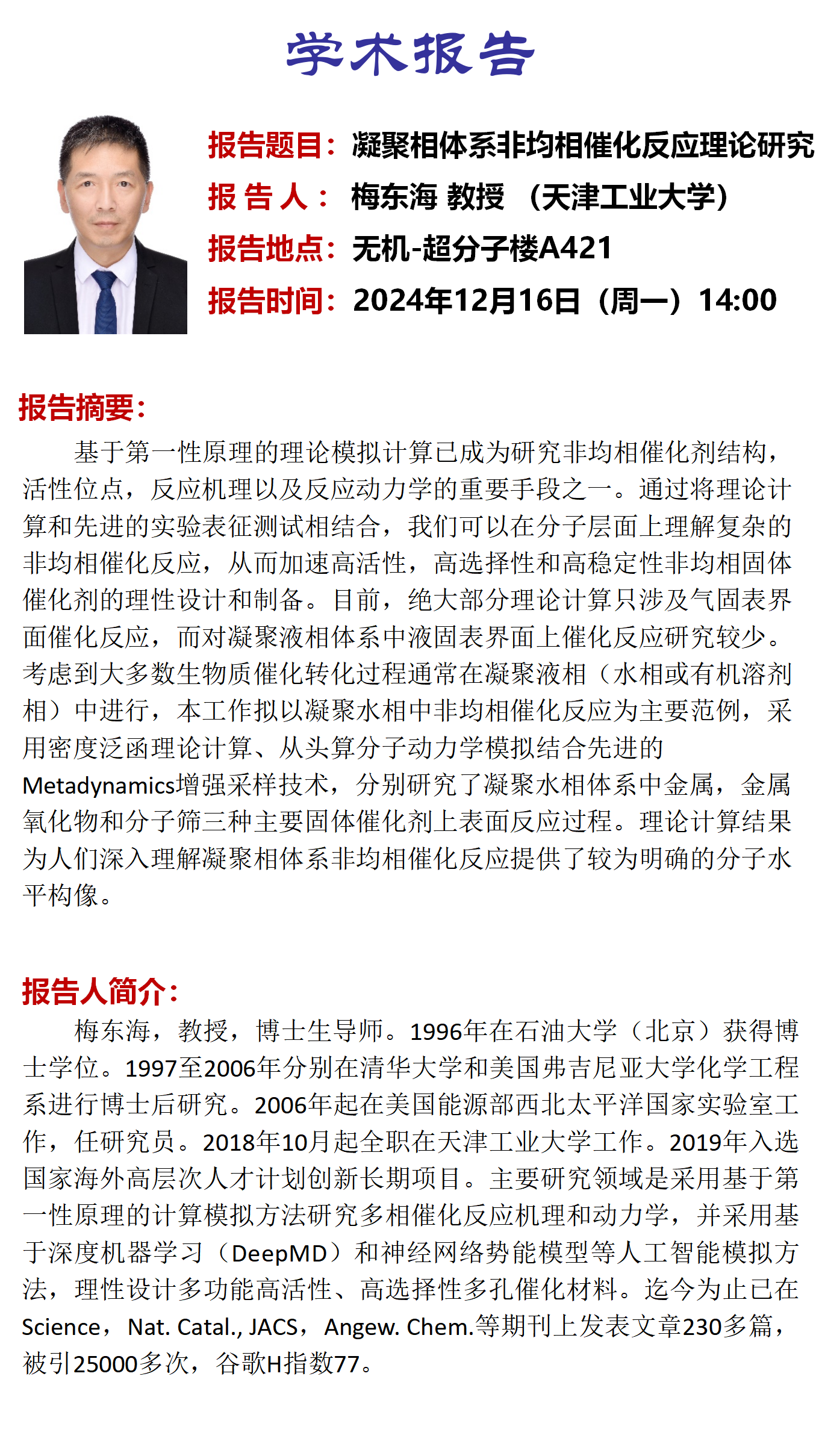 学术报告名称