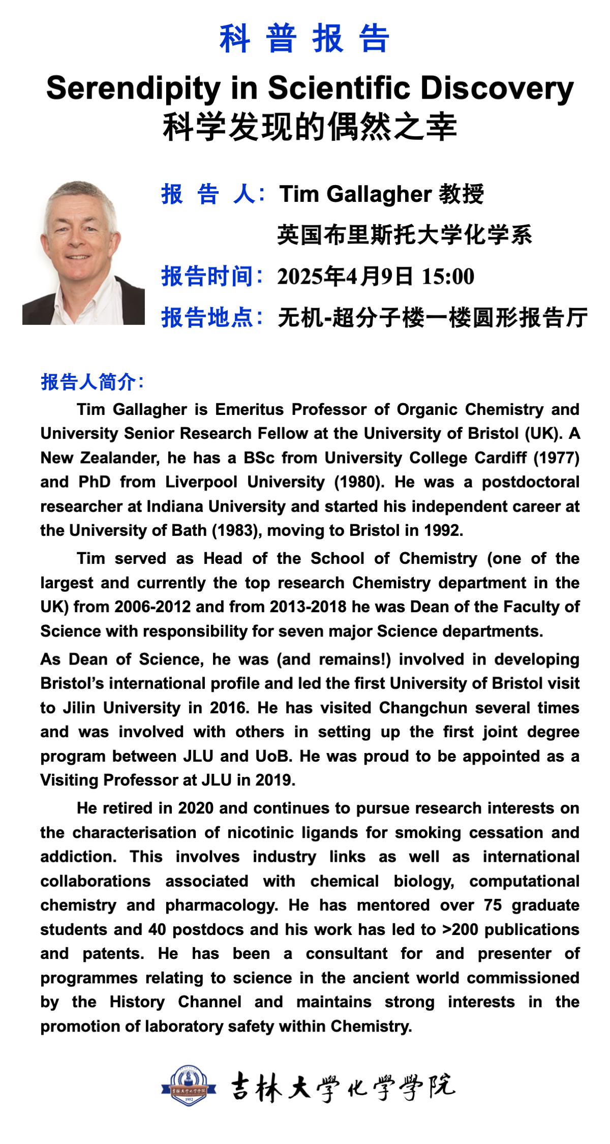 英国布里斯托大学化学系 教授