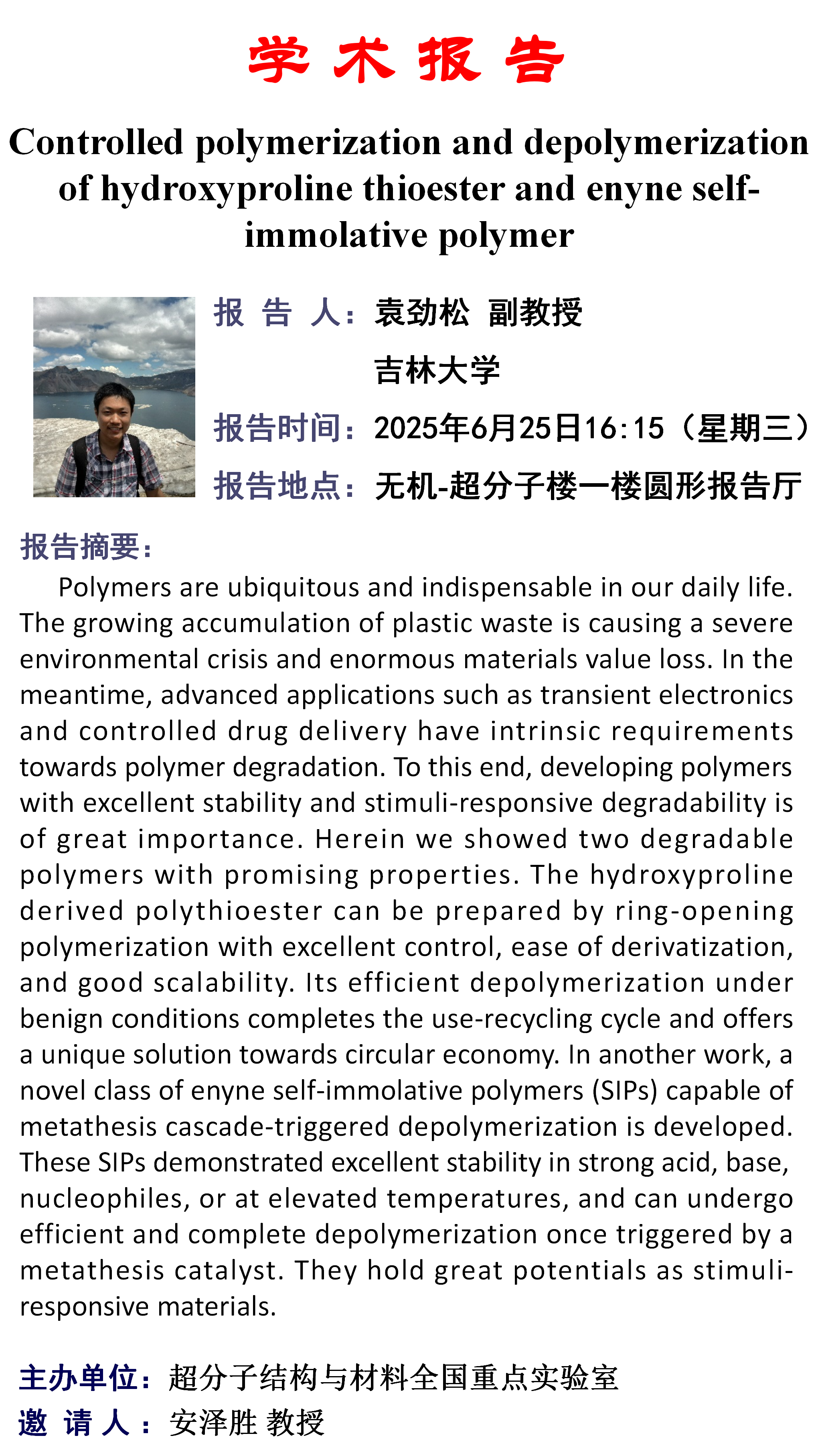 Controlled polymerization and depolymerization of hydroxyproline thioester and enyne self-immolative polymer