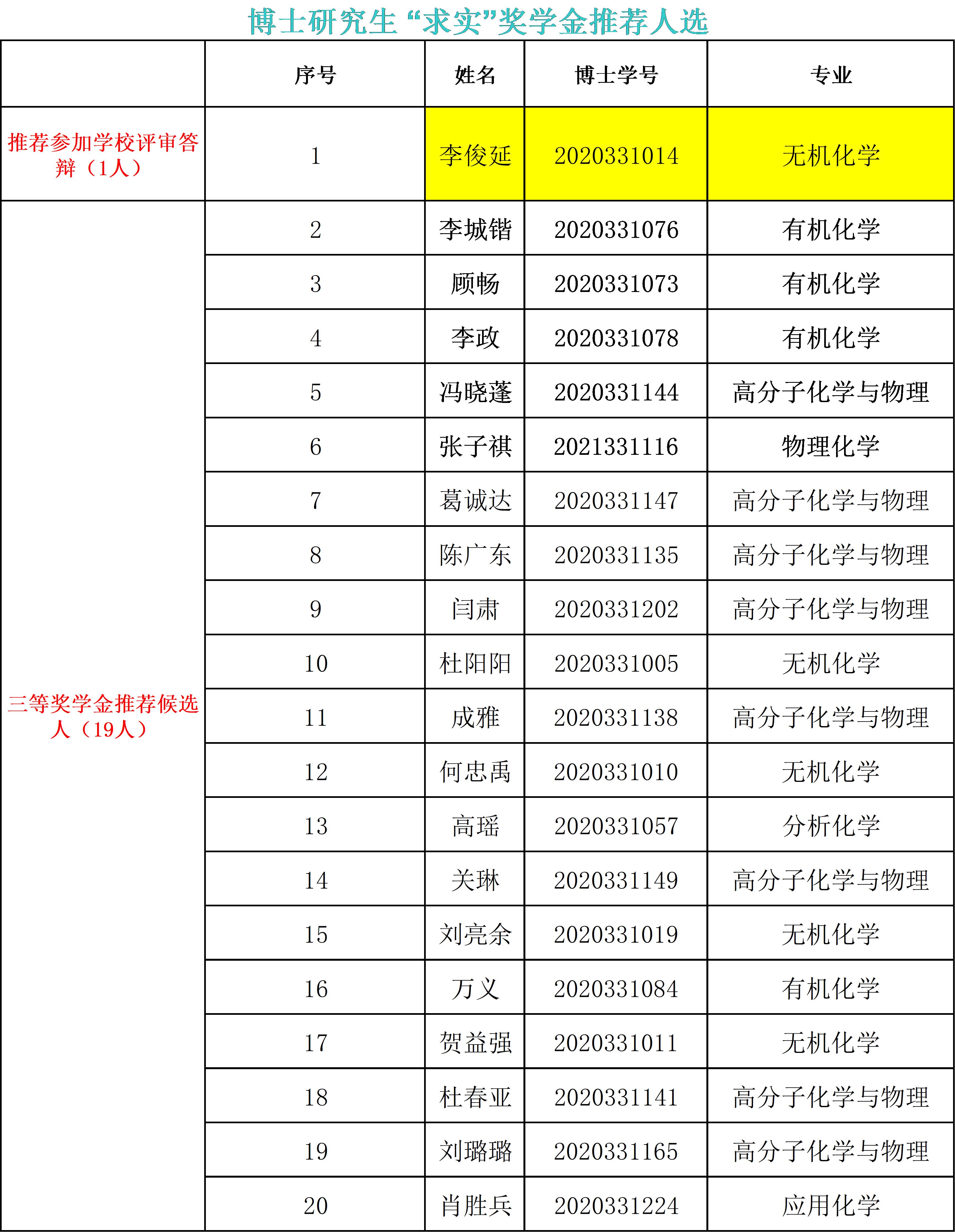 依据《伟德国际victor1946博士生“求实”奖学金评选办法》要求,伟德国际victor1946采取研究生个人申报、导师推荐、公司研办审核材料、评审工作小组初评推荐、公司研究生奖学金评审委员会审核确定的方式进行评定,现拟推荐1名博士李俊延(2020331014))参加公司评审答辩,竞争一等、二等“求实”奖学金;拟推荐李城锴等19名博士为 “求实”奖学金三等奖候选人(名单见附件),如有问题请联系赵晓杰老师,电话13504470223。