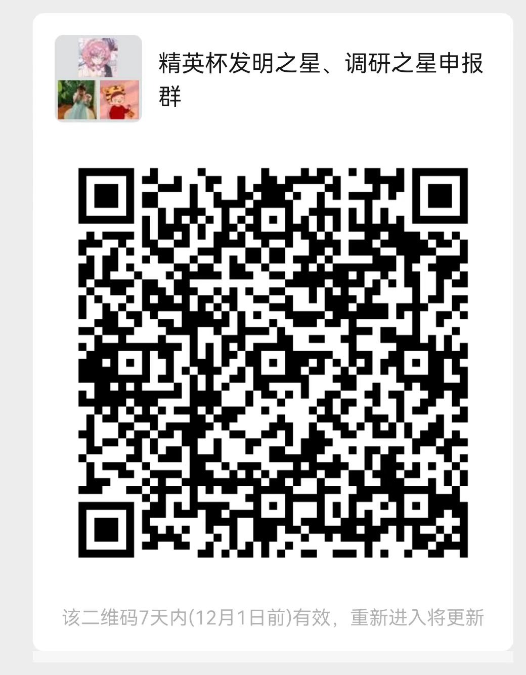 1.11月26日上午10:00前,研究生按申报要求准备个人材料,电子版材料发送至chemdep@jlu.edu.cn,文件名:精英杯发明之星/调研之星+姓名,同时扫码进群;