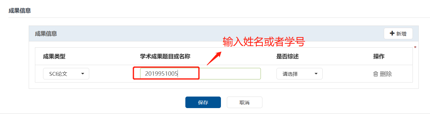 申报研究生于5月8日前使用个人邮箱账号登录“一张表”平台https://one.jlu.edu.cn,在“研究生评奖评优管理”-“研究生评奖评优申报”栏,点击“新增”进行信息填报及佐证材料上传,其中成果信息只需要输入“姓名或者学号”,然后在已审核通过的成果库中选择3篇代表作参评。同时扫码入“2023届优秀毕业生申报群”。成果库中未录入的成果需及时录入-导师审核-科研办姜老师审核。