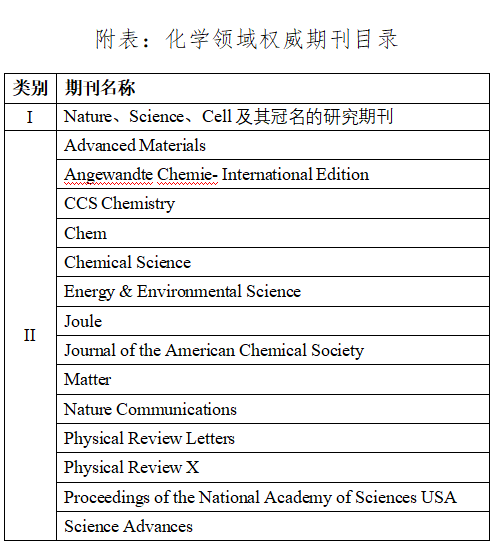 (1) 发表化学领域权威期刊研究论文1篇(权威期刊目录见附表);