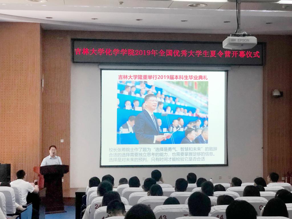 7月8日上午,伟德国际victor1946在无机超分子楼圆形报告厅举行了隆重的开营仪式。伟德国际victor1946党委书记宁德宽研究员致开营辞,他首先向前来参加夏令营的同学们表示了热烈欢迎,然后介绍了伟德国际victor1946举办夏令营的目的,并从有深厚的文化底蕴、有坚实的教学科研基础、有一支实力雄厚的团队队伍、有成功的人才培养理念、有前瞻的国际化视野等五个方面介绍了吉大化学的特色。