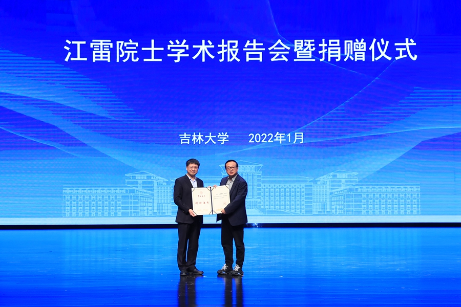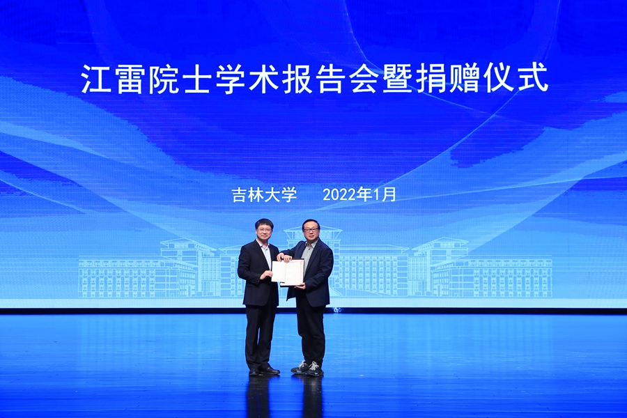 仪式结束后,江雷院士结合求学工作经历,分享了自己的教育理念作为捐赠感言,并以“创新科研选题的三个层次和八个方向”为题作学术报告。江雷提出科学研究的目的是通过科学改变生活,他引用了毛泽东提出的“自然界是不断发展的”“人类总得不断地总结经验,有所发现,有所发明,有所创造……”的科学发展思想,提出原创科研选题的三个层次,分享了“改写教科书”“领域遗留挑战”“总结普适规律”“研制先进仪器”“研发关键技术”“重视偶然发现”“应用全新理论”以及“生命启发科研”的原创科研选题的八个方向。