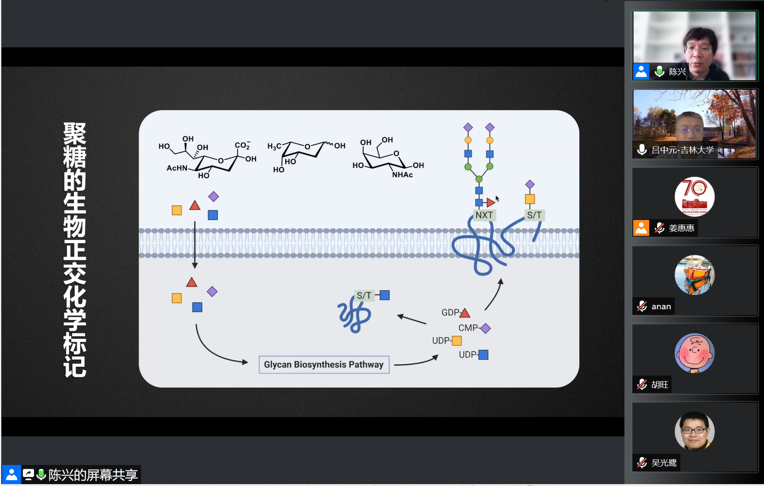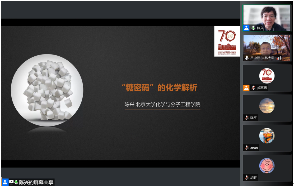 5月21日上午,北京大学化学与分子工程公司教授、经理,国家杰出青年科学基金获得者陈兴应邀线上做客“吉大化学七十年——科学与未来系列讲座”,以“‘糖密码’的化学解析”为题,为公司师生作学术报告。