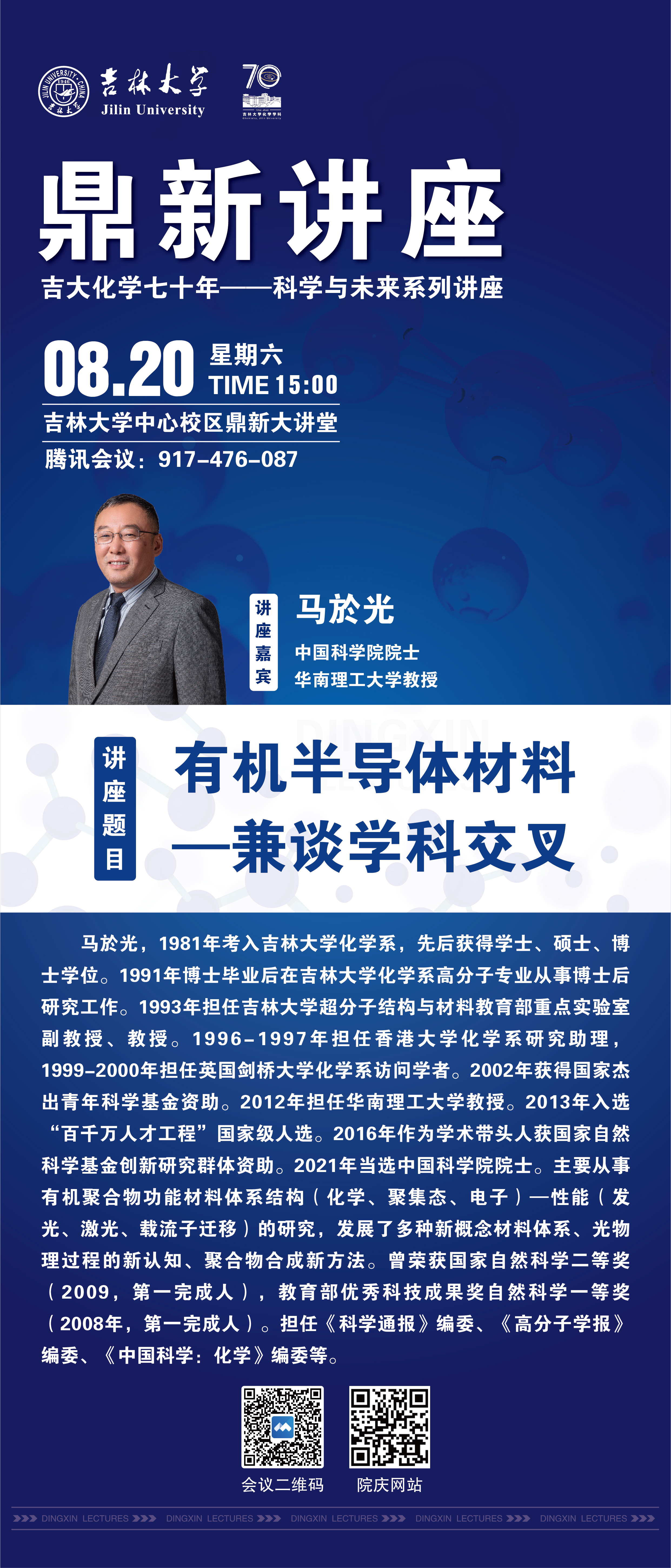 吉大化学70年院庆系列活动——科学与未来系列讲座:有机半导体材料-兼谈学科交叉